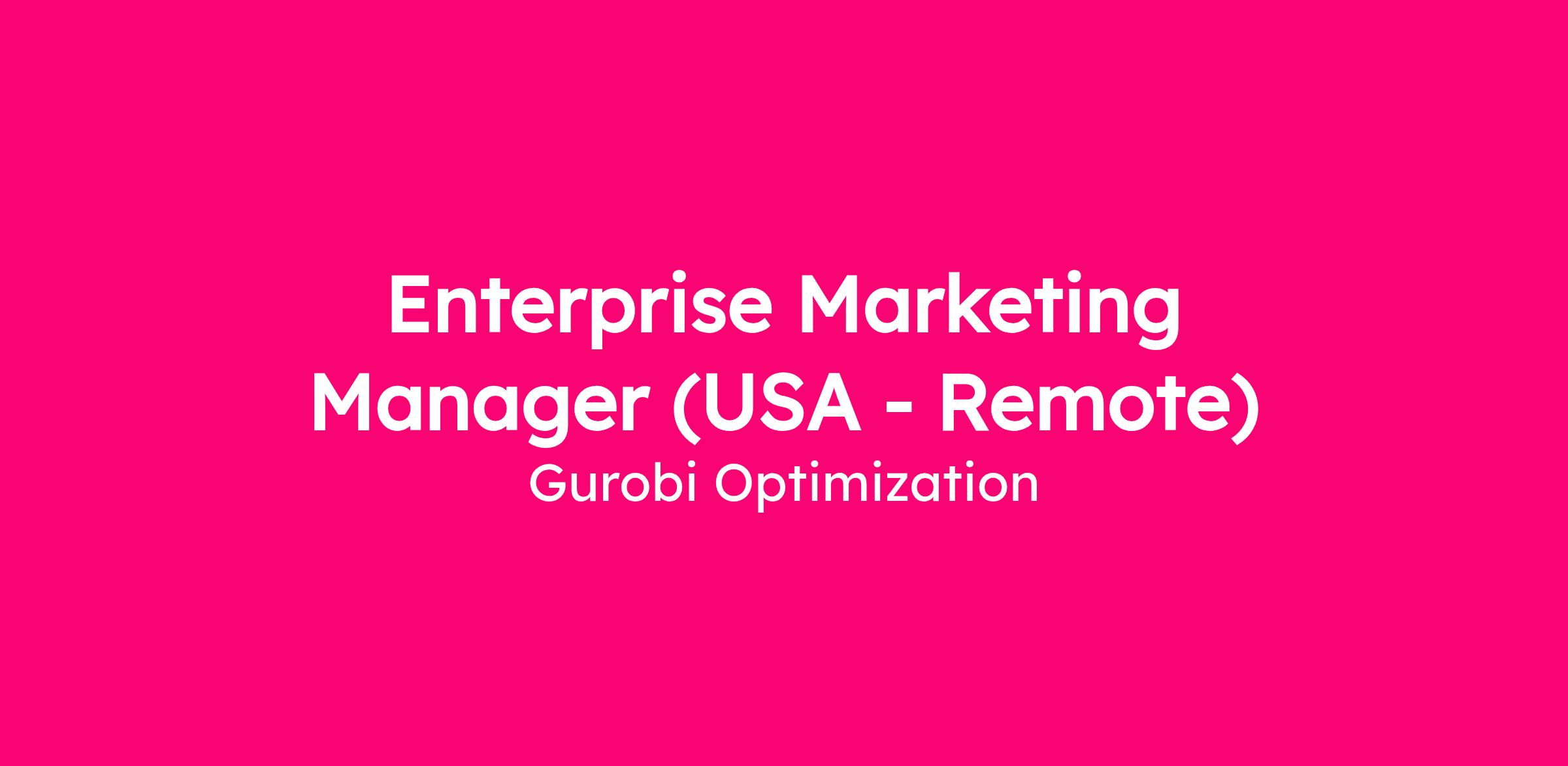 Gurobi Optimization is seeking a strategic, execution-oriented Enterprise Marketing Manager to drive growth across our largest enterprise accounts. This is a global role that will focus primarily on the U.S. market, with some execution and close collaboration across EMEA and other global regions.