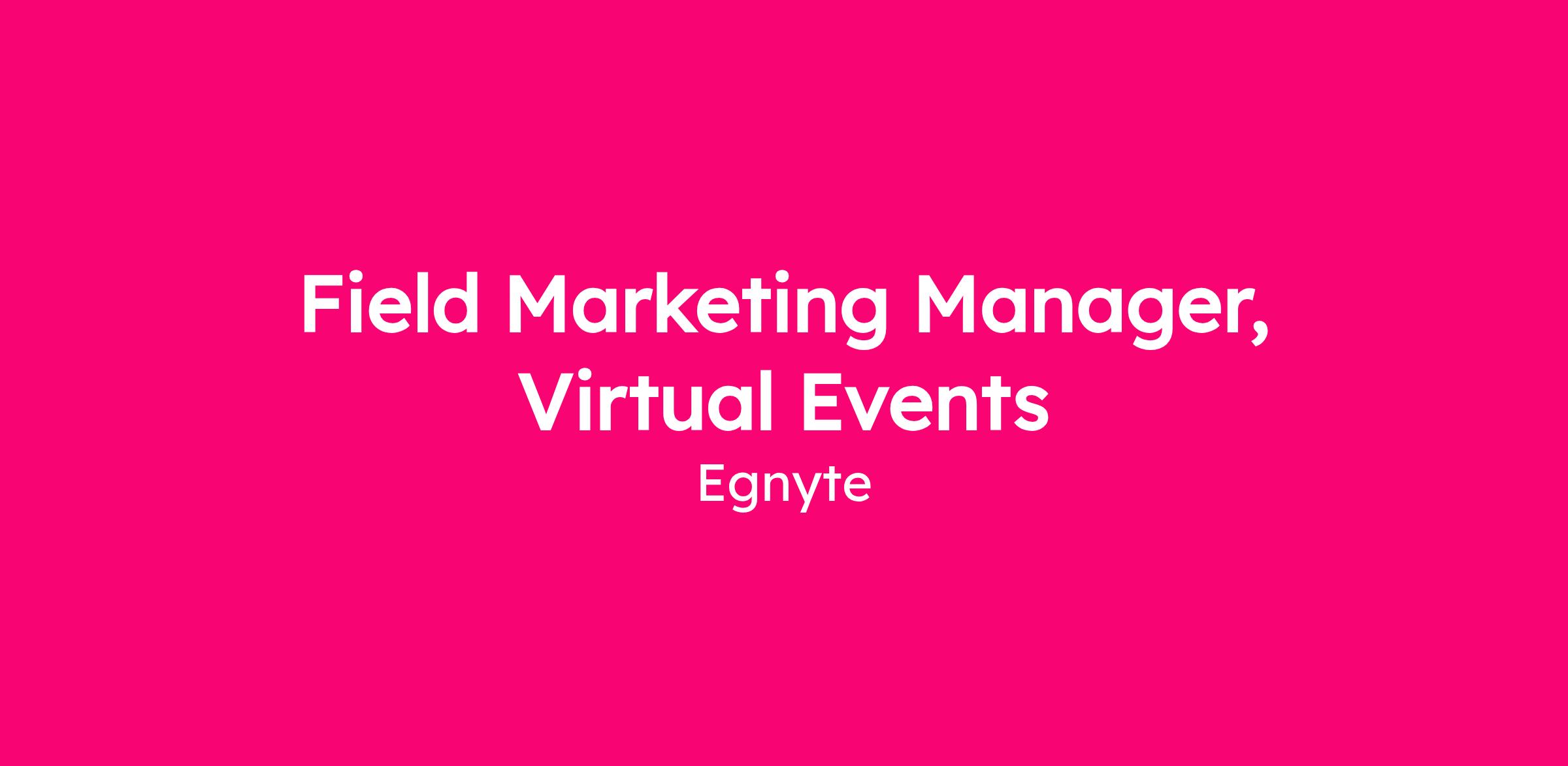 The Field Marketing team enables the Egnyte Sales Organization to drive pipeline and revenue through targeted, high-impact campaigns and experiences. In this role, you will be responsible for leading the team’s virtual event campaigns across the global team, creating unique experiences that engage customers and prospects in new learning opportunities.