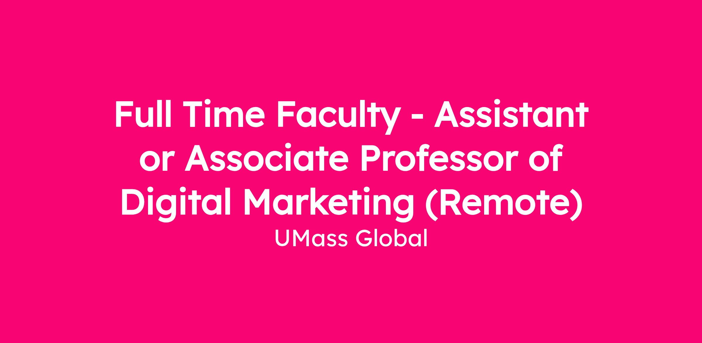 Are you passionate about expanding access to education and shaping the future of Digital Marketing? The School of Business & Professional Studies at the University of Massachusetts Global is seeking a dynamic, mission-driven faculty member to join our fully remote academic community starting August 2026 This full-time appointment is anticipated at the Assistant Professor level, with consideration for Associate Professor based on experience.