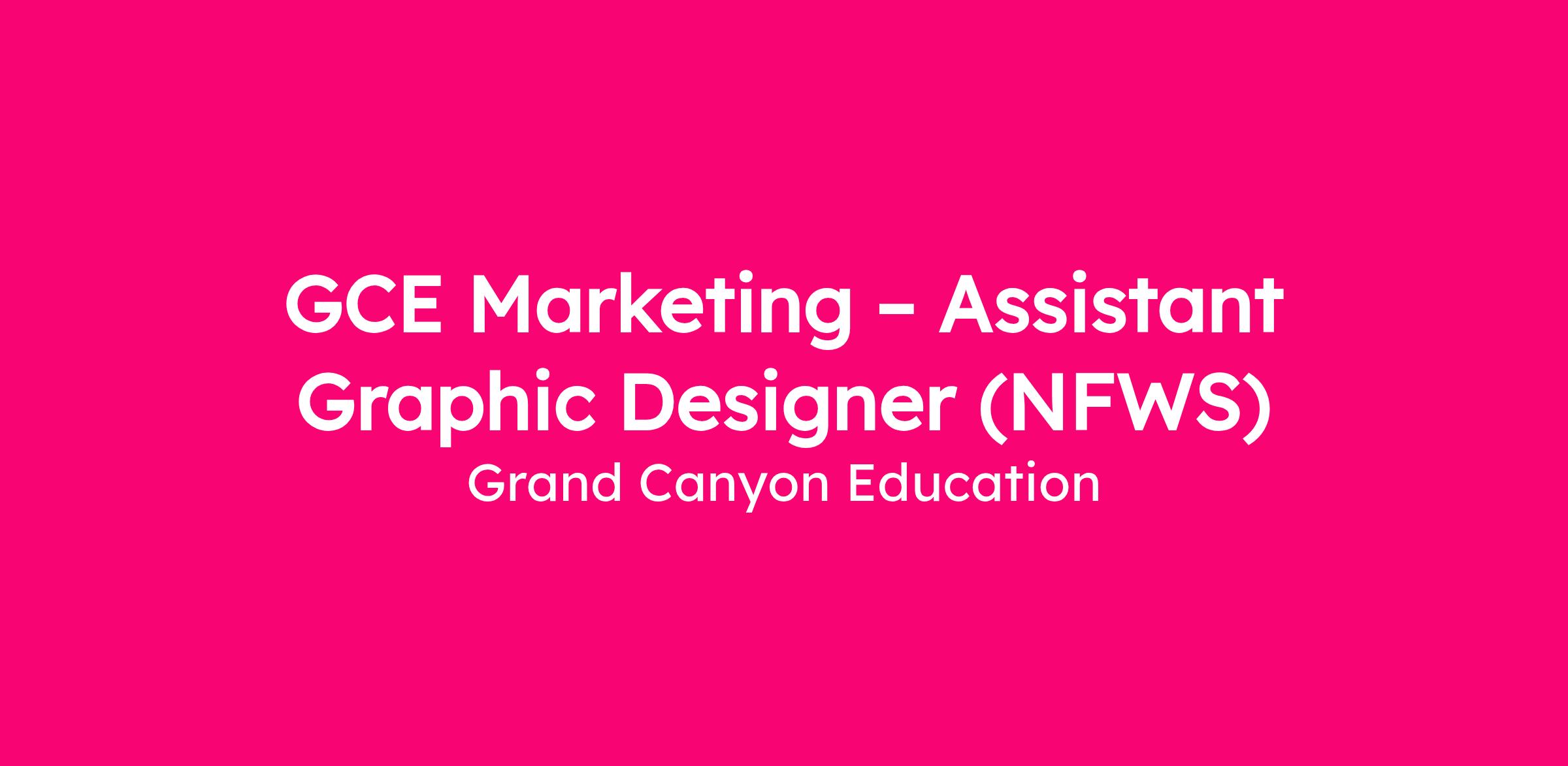 Grand Canyon Education (GCE) is seeking an Assistant Graphic Designer to support the mission of Grand Canyon University through GCE's Marketing department.