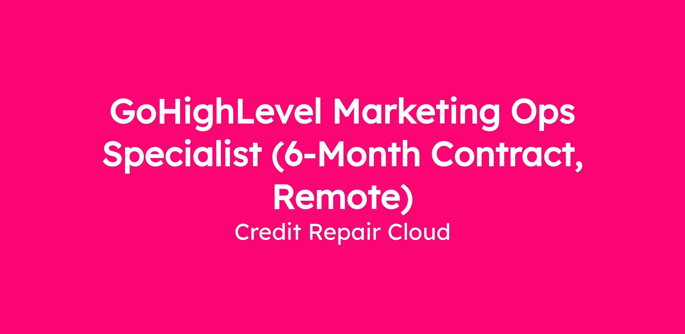Credit Repair Cloud is the leading SaaS platform powering the credit repair industry. We’re hiring a hands-on marketing ops specialist to own the day-to-day execution of our marketing tech stack for a 6-month contract with possibility of extension. This is a remote, international-friendly role. If you dream in GHL workflows and have migrated teams off HubSpot, keep reading.