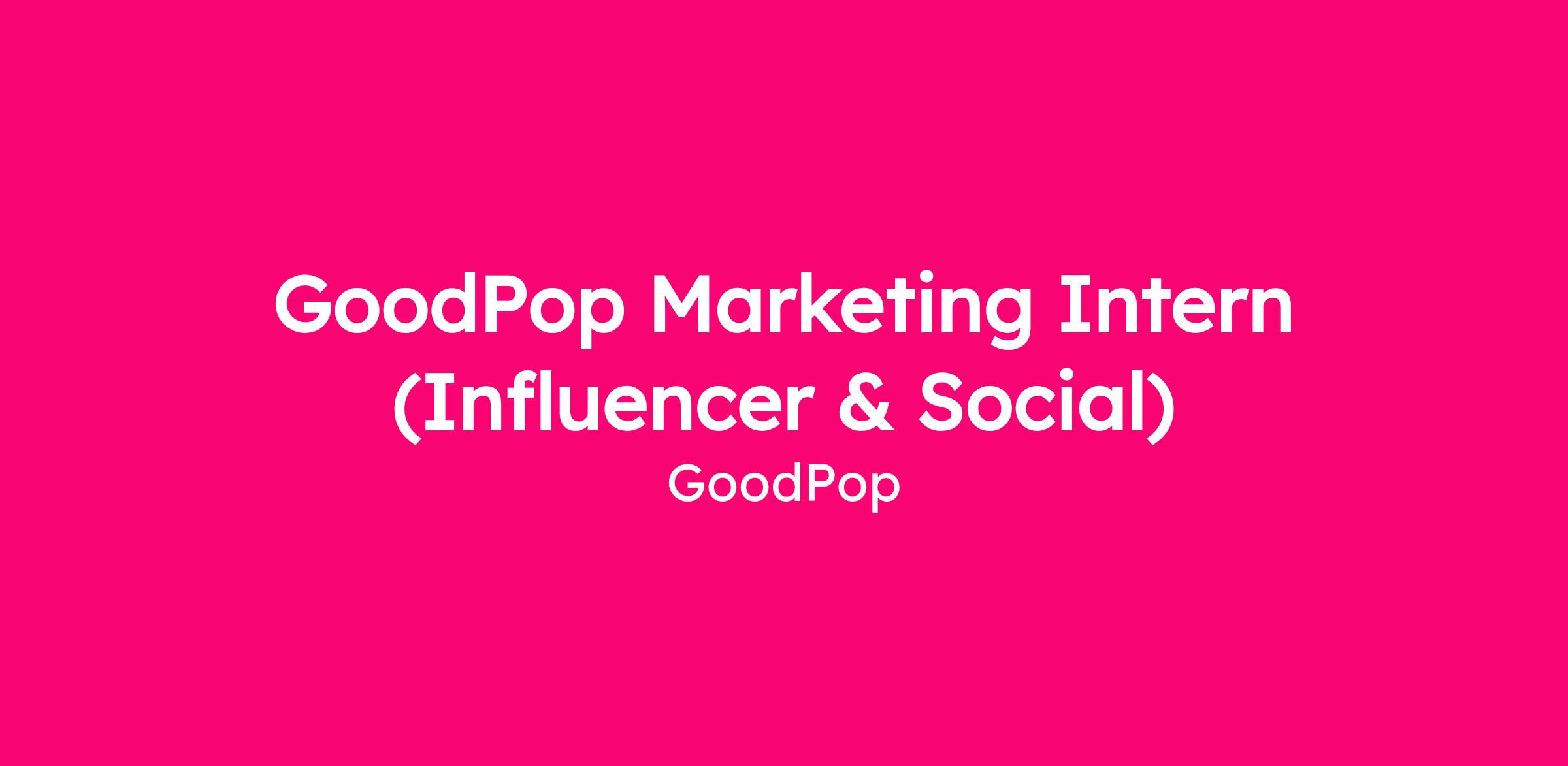 GoodPop makes delicious frozen treats with simple, feel-good ingredients and a mission-driven heart. From organic fruit pops to low-sugar options, we're redefining what indulgence can look like. As a fast-growing brand, we're looking for a creative, curious, and detail-oriented intern to support our influencer and social marketing efforts.