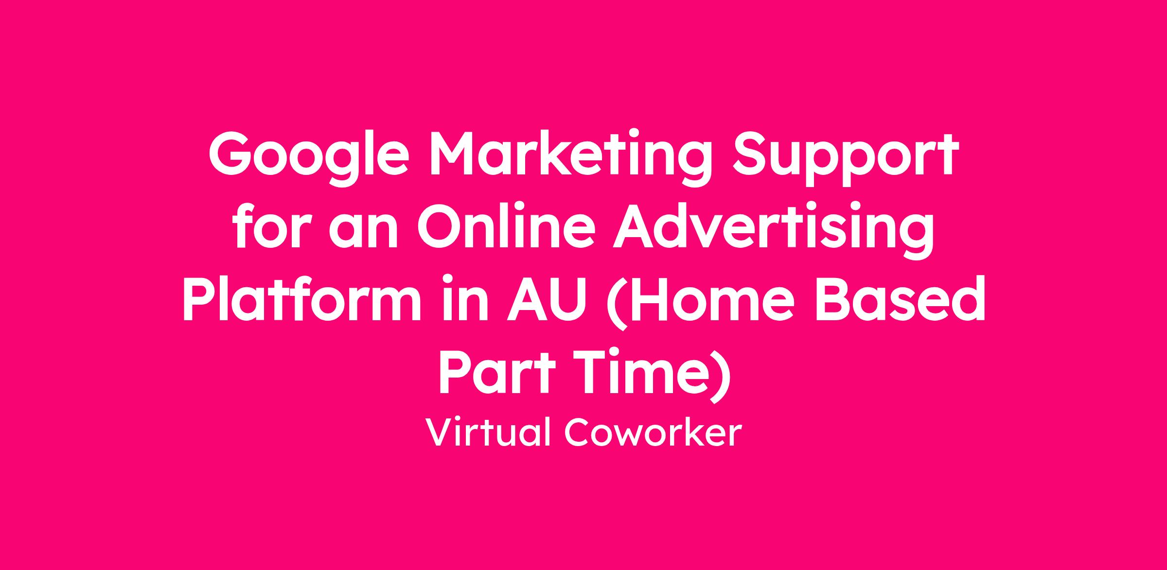Google Marketing Support for an Online Advertising Platform in AU (Home Based Part Time)
