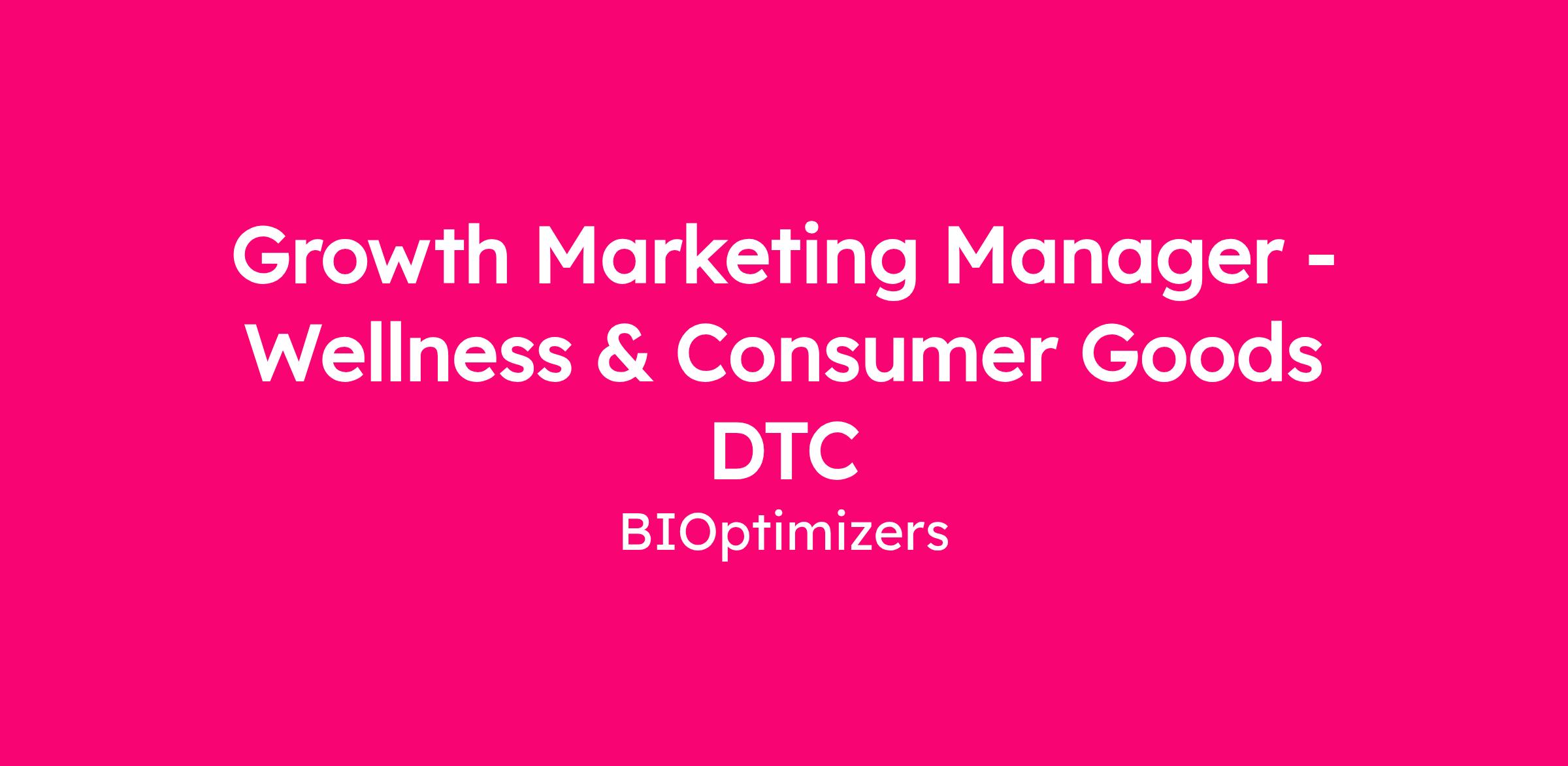 Growth Marketing Manager - Wellness & Consumer Goods DTC