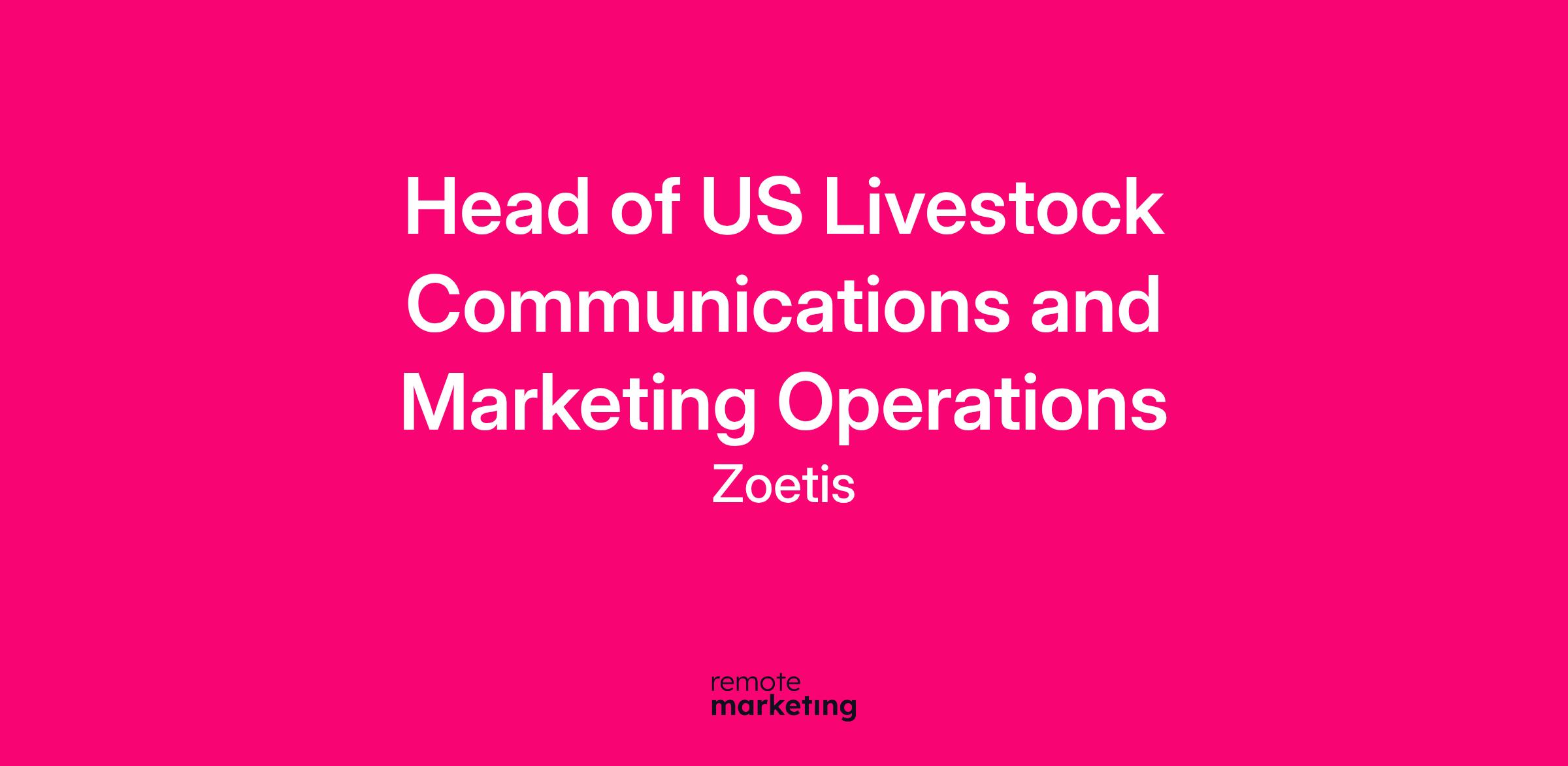 The Head of US Livestock Communications & Marketing Operations is responsible for all business-unit communications and oversees the planning and implementation of all marketing communications and operations initiatives supporting Zoetis’ US beef, dairy, pork, poultry and equine businesses. A member of the marketing leadership team, the director is responsible for supervising and developing a team of communications and operations professionals, managing the marketing budget and tracking, and managing the overall relationship with agency and supplier partners.