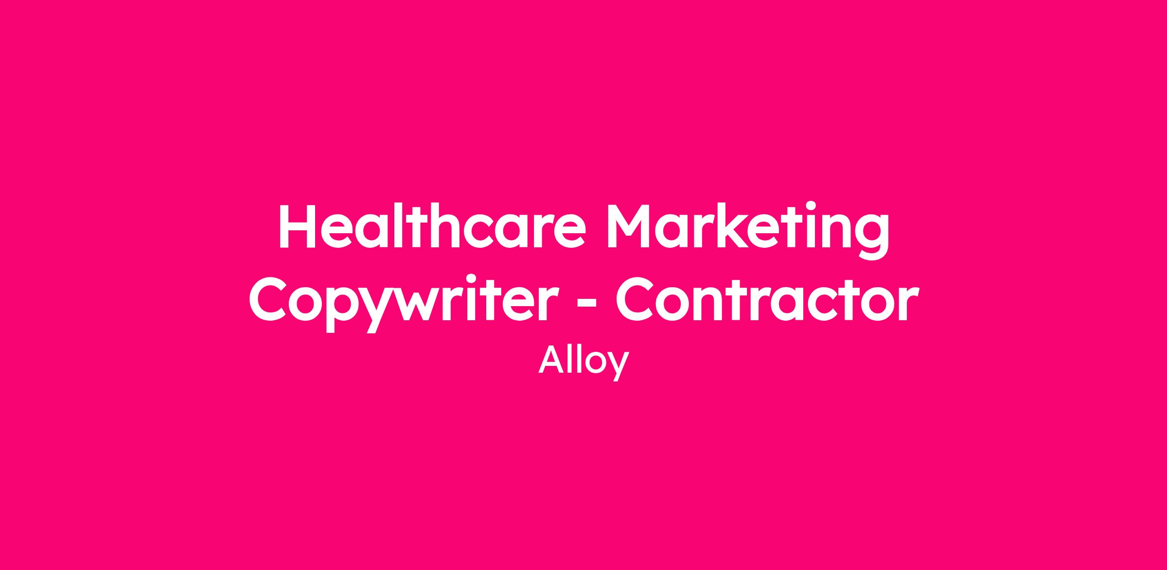 Healthcare Marketing Copywriter - Contractor