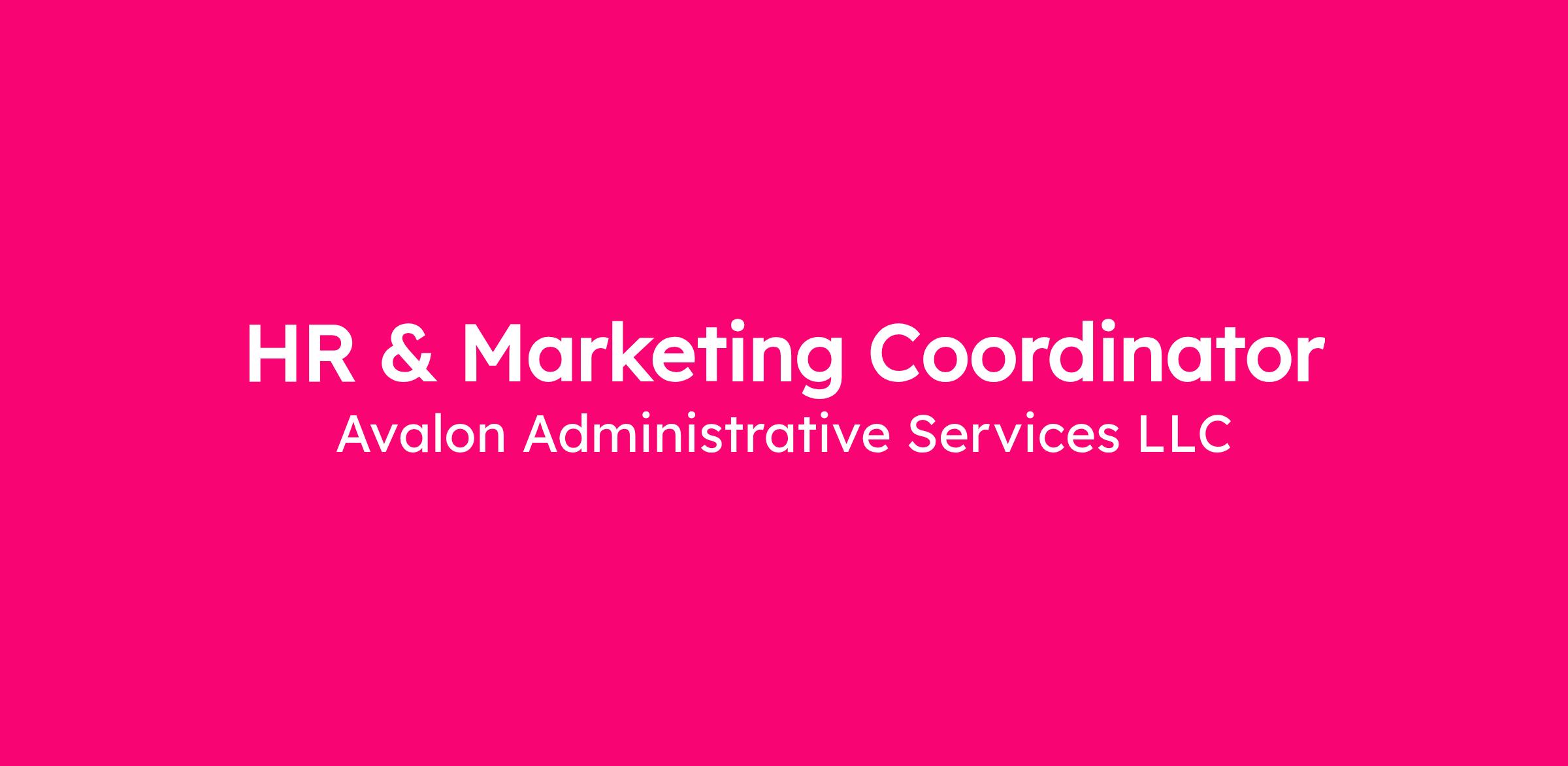 Avalon Healthcare Solutions is seeking a highly organized and proactive HR & Marketing Coordinator to support both the Marketing and Human Resources teams. This hybrid role will focus on event planning and logistics, internal and external communications, and cross-functional coordination.