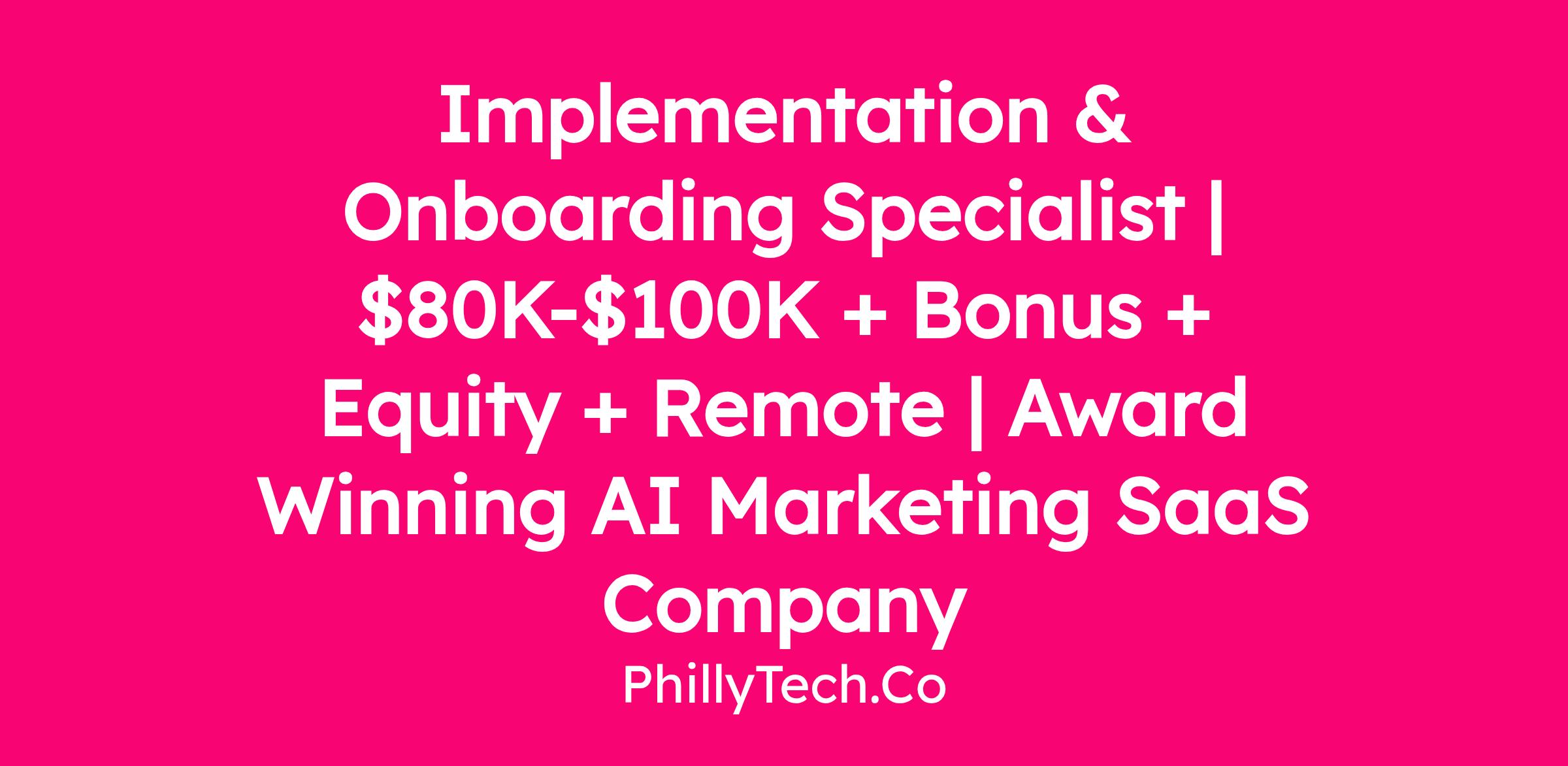 Implementation & Onboarding Specialist | $80K-$100K + Bonus + Equity + Remote | Award Winning AI Marketing SaaS Company