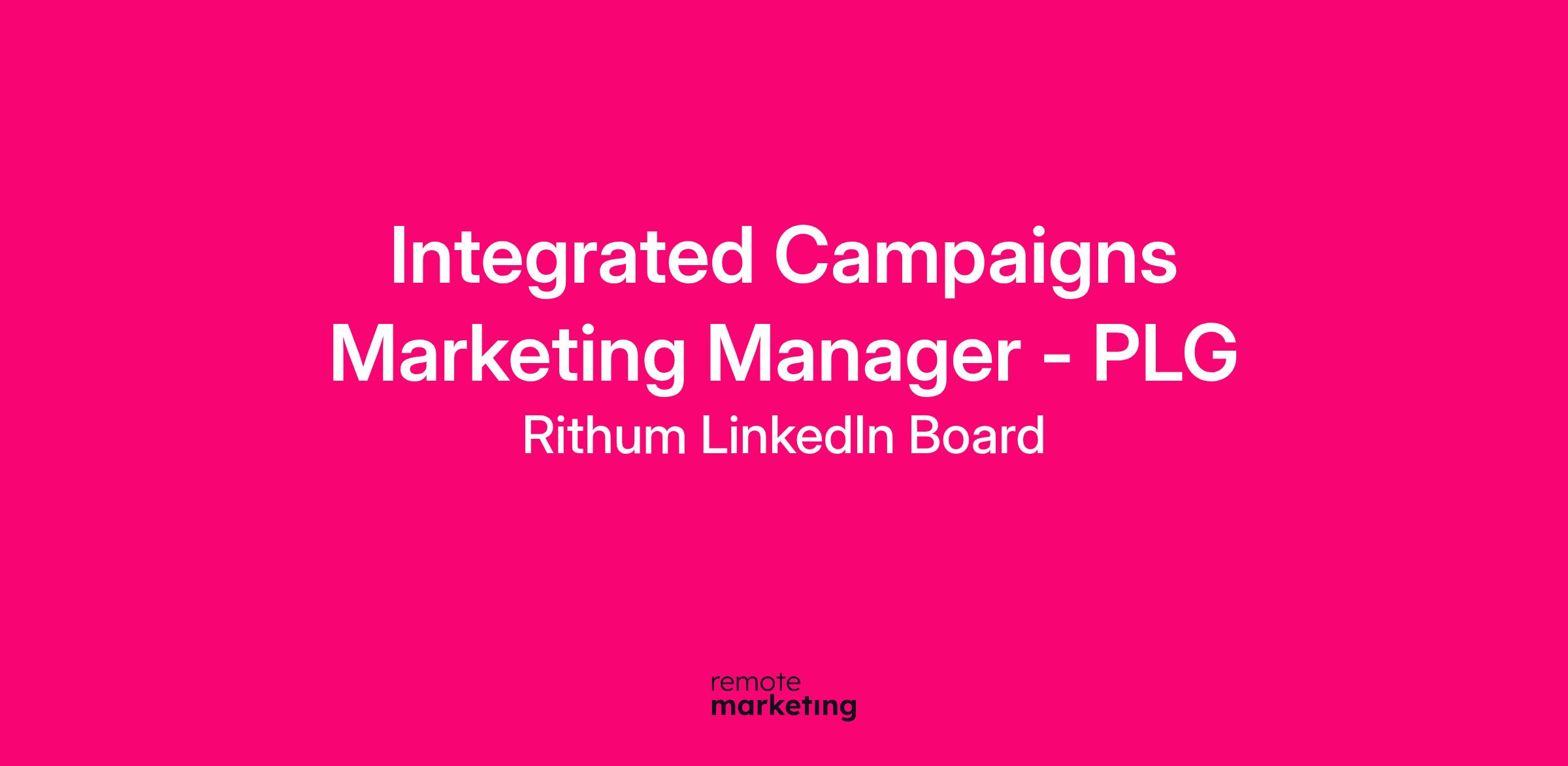 As the Integrated Campaigns Marketing Manager (PLG Focus), you design and execute multi-channel campaigns that accelerate product-led growth, self-serve adoption, and revenue expansion. You bridge traditional marketing strategy with the unique dynamics of a PLG funnel, where product experience and in-app engagement drive growth as much as acquisition. Working at the intersection of growth marketing, lifecycle, and product experience, you partner with product, data, and go-to-market teams to turn user insights into integrated campaigns that inspire sign-ups, activate users, and convert self-serve customers into enterprise advocates. You bring both strategic vision and hands-on execution, using data and experimentation to connect every touchpoint, from digital campaigns to in-product journeys, into a seamless path from awareness to expansion. This is an opportunity to shape Rithum’s PLG motion and define how we bring our products to market in a PLG-first world.