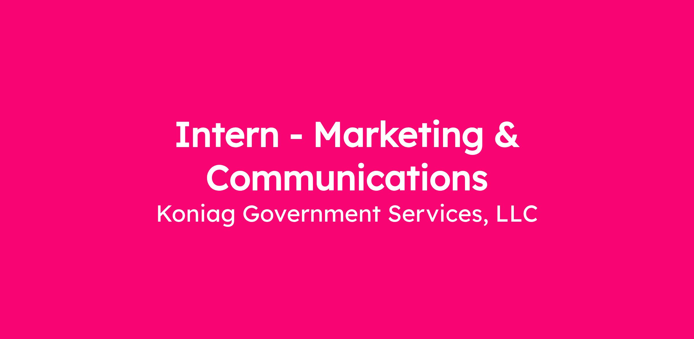 Koniag Government Services is looking for a Marketing & Communications Intern to support our MarCom team. This is a remote opportunity.