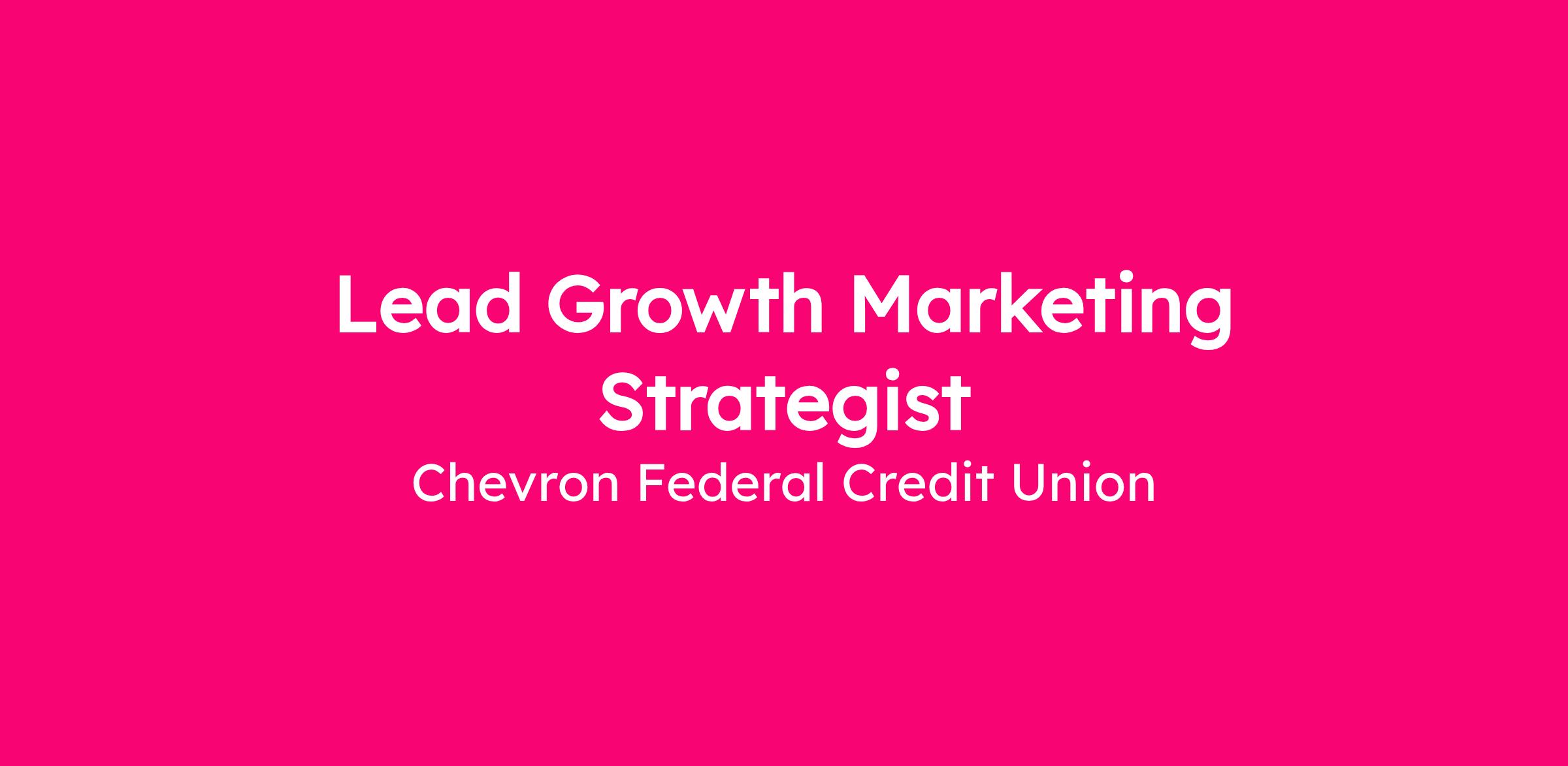 Chevron Federal Credit Union (CFCU) is seeking a Lead Growth Marketing Strategist to lead the strategy, execution, and optimization of digital and lifecycle marketing programs that drive member acquisition, engagement, and product adoption. This role is responsible for designing and delivering end-to-end member journeys, including onboarding, cross-sell, and retention, while directly executing campaigns within marketing automation platforms. The Lead Growth Marketing Strategist will leverage data, technology, and experimentation to improve conversion rates and deliver measurable business outcomes. This position plays a critical role in advancing Marketing as a data-driven growth engine, with accountability for both strategic direction and hands-on execution of lifecycle marketing initiatives.