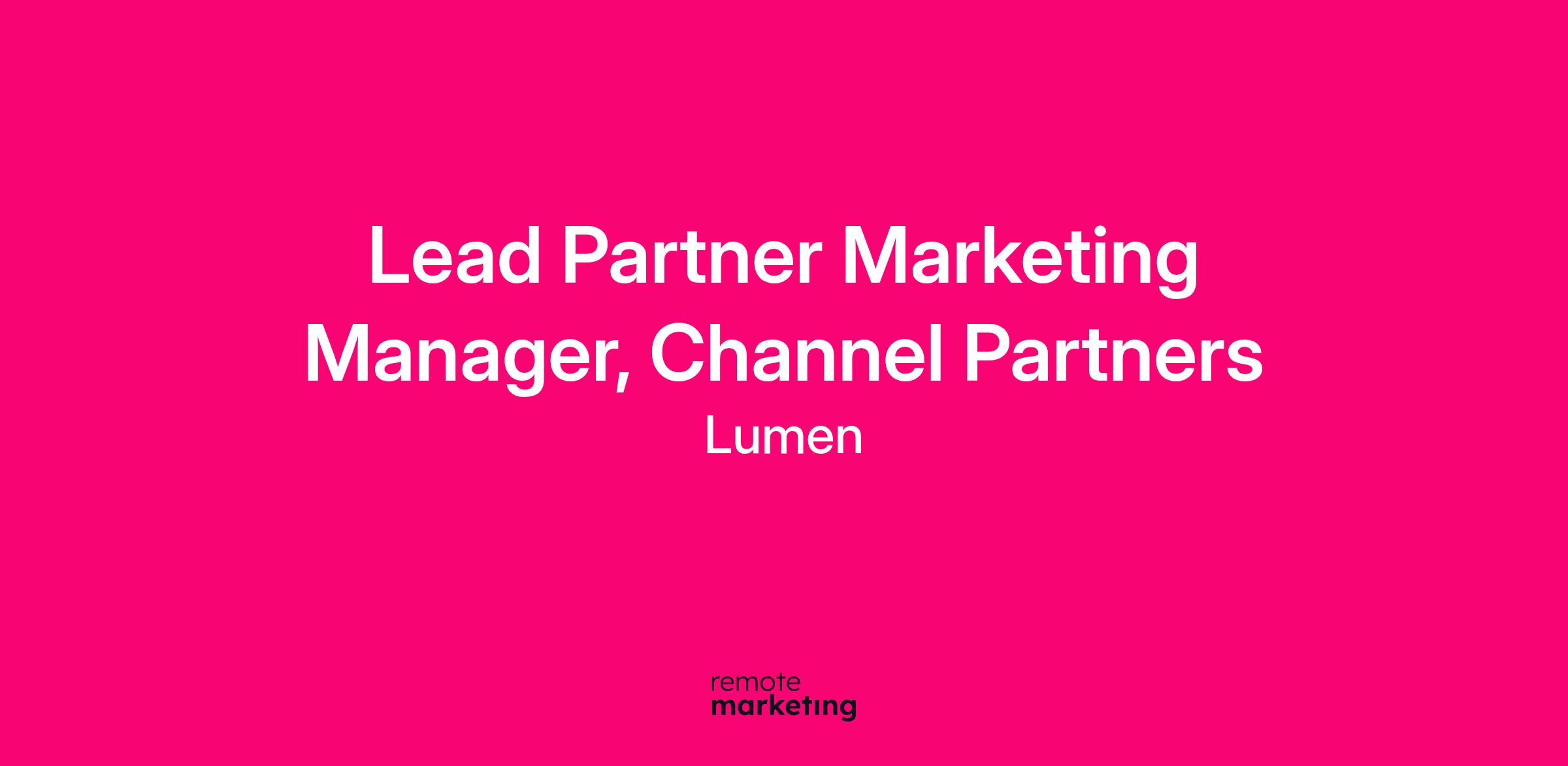 Lumen is seeking a skilled, dynamic Lead Marketing Manager to provide marketing incubation and events management support for the Lumen Channel Partner Program. This role will focus primarily on incubating and growing partner and agent relationships from a marketing perspective, as well as event production and support. The ideal candidate will have a solid background in marketing, the technology industry, and channel partner and partner ecosystems, with excellent project management skills, strong event management and production skills, and excellent writing and communication skills. They will also have a track record of building and driving successful marketing plans and programs for channel partners.