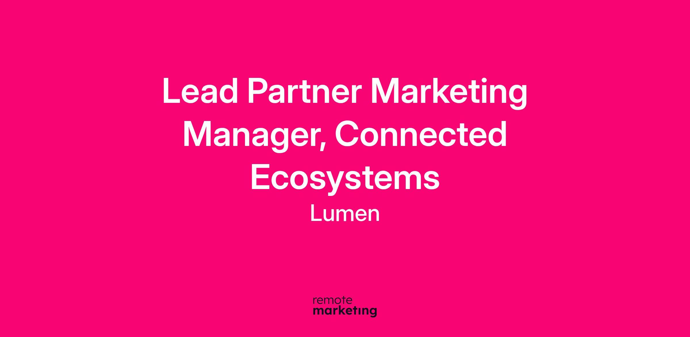 Lumen is seeking a skilled, dynamic Lead Marketing Manager to provide partner marketing incubation and events/tradeshow management support for the new Connected Ecosystem organization. This role will focus primarily on partner events and tradeshow management and production, as well as incubating and growing Connected Ecosystem technology partner relationships from a marketing perspective. The ideal candidate will have a strong, proven background in event management and production, partner marketing, technology industry, partner ecosystems, excellent project management skills, excellent writing and communications skills, and a track record of building and driving successful marketing plans for channel partners.