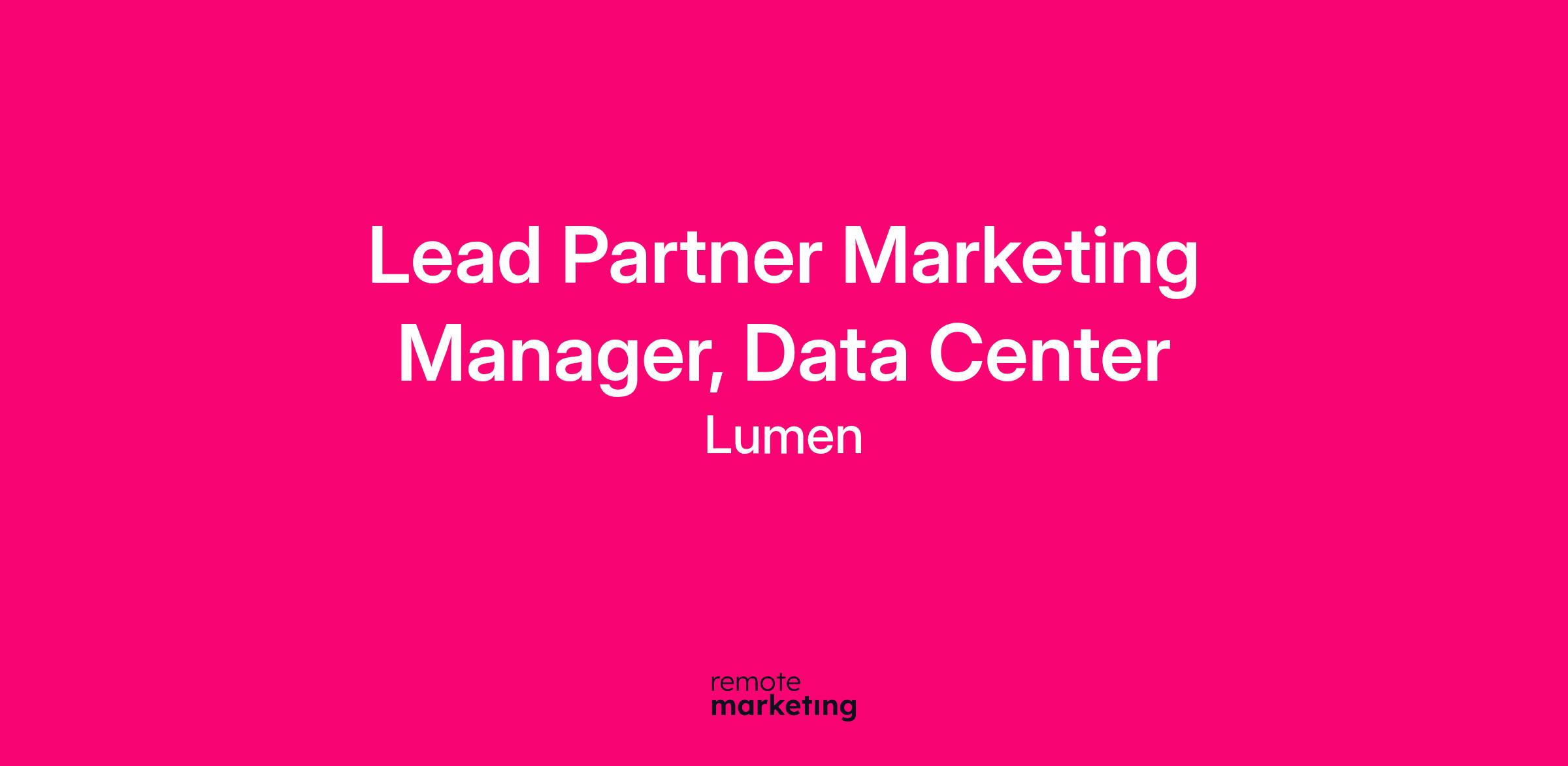 Lumen is seeking a skilled, dynamic Lead Marketing Manager to provide marketing support for data center provider partnerships in the Connected Ecosystem sales organization. This role will be primarily focused on incubating and growing data center provider partnerships via developing marketing plans and full marketing support, including event management and communications. The ideal candidate will have a solid background in marketing, technology industry, data center providers, partner ecosystems, excellent project management skills, excellent writing and communications skills, strong event planning and production skills, and a track record of building and driving successful marketing plans, programs, and MDF programs and campaigns for data center provider partnerships.