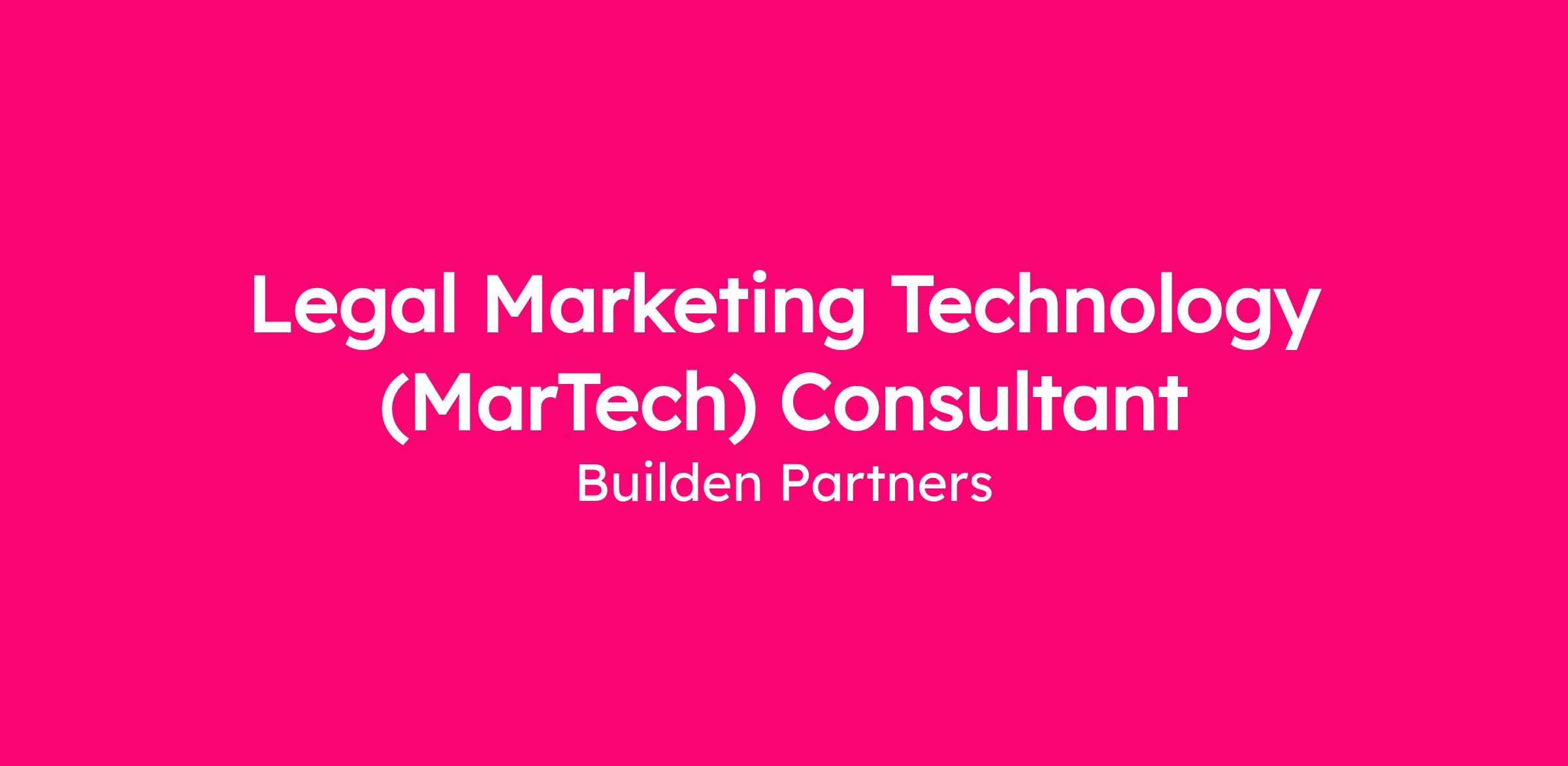 Builden PartnersLegal Marketing Technology (MarTech) Consultant Job DescriptionFebruary 2026Builden Partners is seeking an experienced legal marketing technology (MarTech) consultant with deep, hands‑on law firm CRM expertise to support project-based client engagements that require technical skill, system optimization and practical, execution‑focused support. This is a remote, flexible contract role ideal for independent professionals who understand how law firms actually use CRM systems (and where they struggle) and can translate strategy into efficient, scalable workflows.As a contractor, you’ll partner with Builden and its clients on defined scopes of work related to CRM optimization, workflow development, data integrity, marketing automation and technology adoption.About BuildenBuilden Partners is redefining how law firms approach marketing and business development. Headquartered in Chicago and serving clients nationwide, our process-driven approach to law firm marketing has fueled remarkable growth, earning us a spot on the 2025 Inc. 5000 Fastest-Growing Companies List.Serving a diverse client base ranging from premier legal boutiques to global powerhouses, we transform fragmented marketing efforts into cohesive, forward-looking strategies that resonate with clients and drive growth. Our culture is collaborative, supportive and built on continuous learning.Builden also runs the highly regarded law firm marketing trade group Legal & Professional Services Counsel.Project-Based Responsibilities- Serve as a subject‑matter expert on leading law firm CRM platforms (e.g., Intapp DealCloud, Salesforce, HubSpot, InterAction+, Nexl, Dynamics, Zoho, etc.).