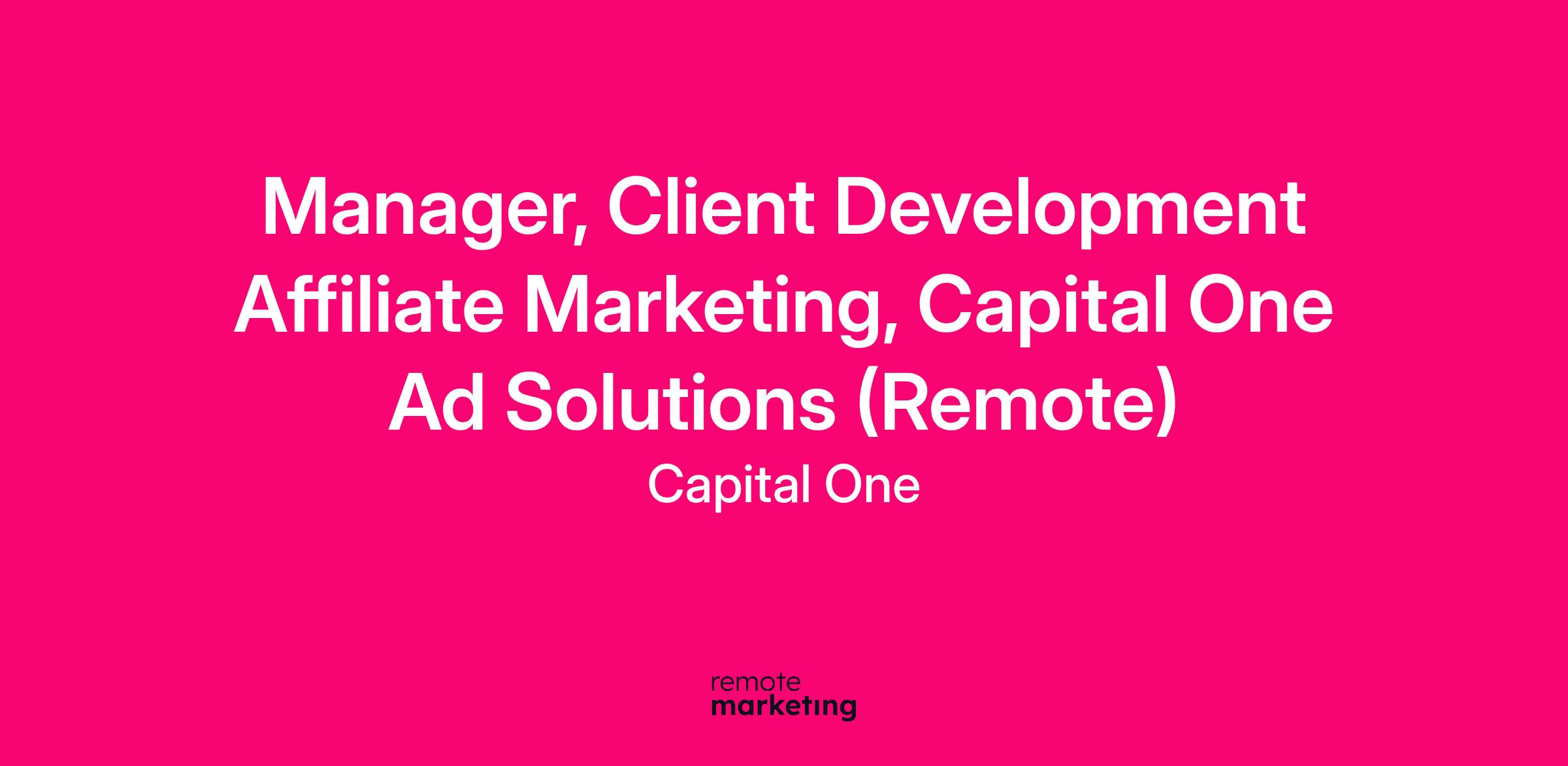 Remote (Regardless of Location): $132,800 - $151,600 for Manager, Capital One Ad Solutions
