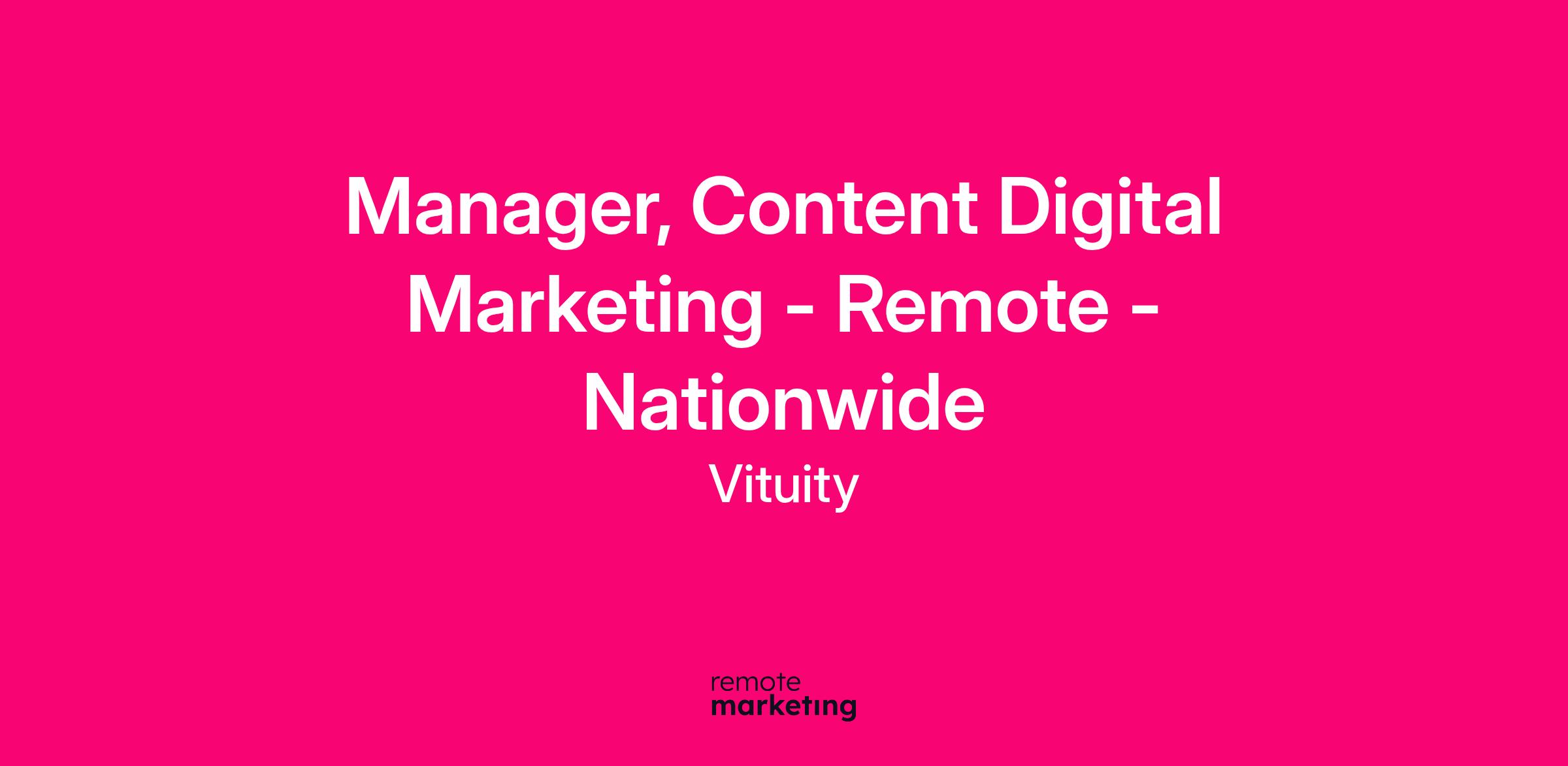 Remote, Nationwide – Seeking Manager, Content Digital Marketing - MOOV