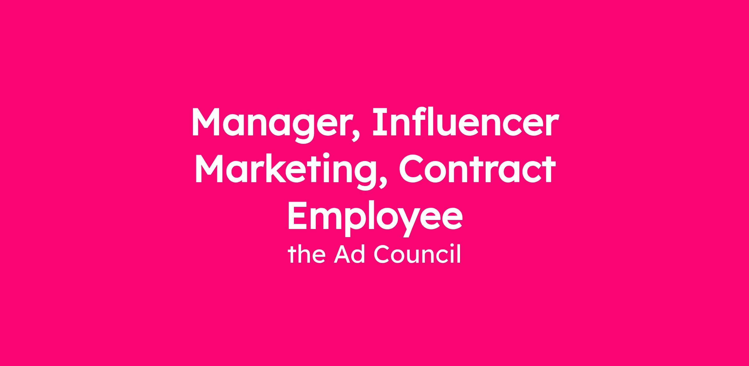 Your primary role as the Manager, Creators for Good is the full-service execution of trusted messenger and influencer activations on behalf of Ad Council and its co-branded client campaigns including: influencer strategy and brief development, sourcing, influencer or network outreach, brand safety vetting, copywriting, content development, review and approval, paid amplification strategy and execution, stakeholder coordination, measurement, analytics and cross-functional collaboration.