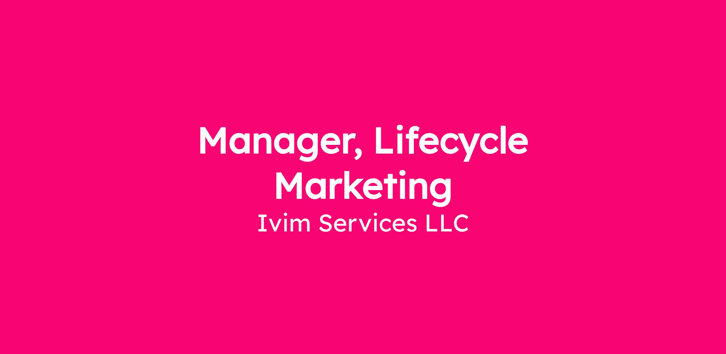 Job Title: Manager, Lifecycle Marketing