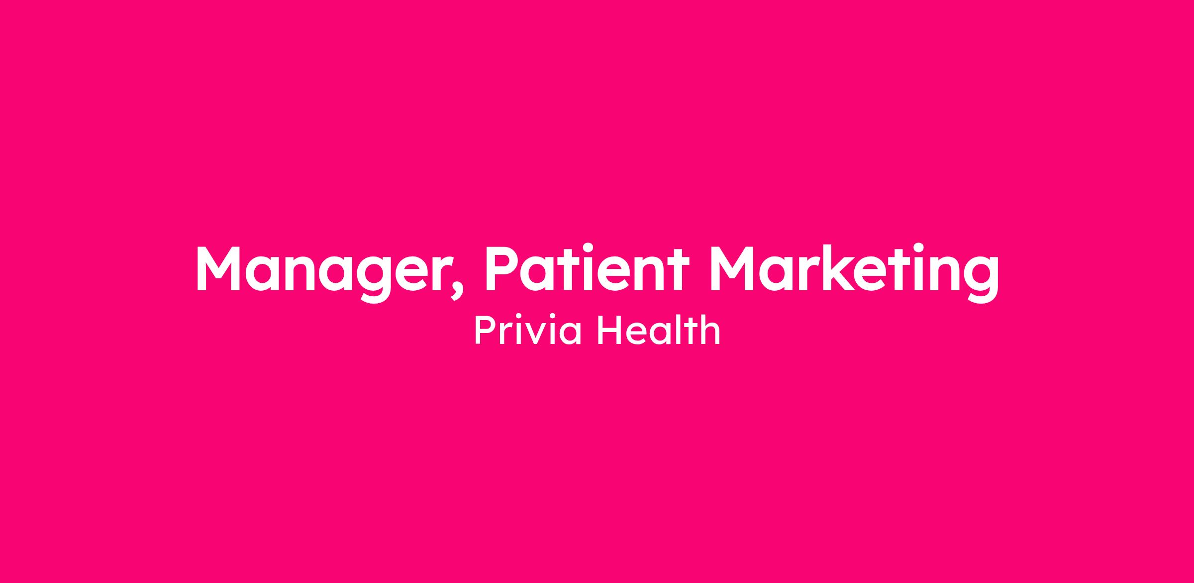 The Manager, Patient Marketing is responsible for developing and managing the playbook of marketing campaigns, operations, and projects for a variety of key patient initiatives and tracking the efficacy of these efforts. These include virtual health and clinical research, strategic health reminder marketing and communications campaigns to improve quality and population health outcomes for our value-based contracts, educational messaging for our Medicare and Medicare Advantage populations, information about Privia’s robust specialty network, appointment reminders, and more. This role also serves as the people manager for the Sr. Creative Associate and Sr. Marketing Associate.
