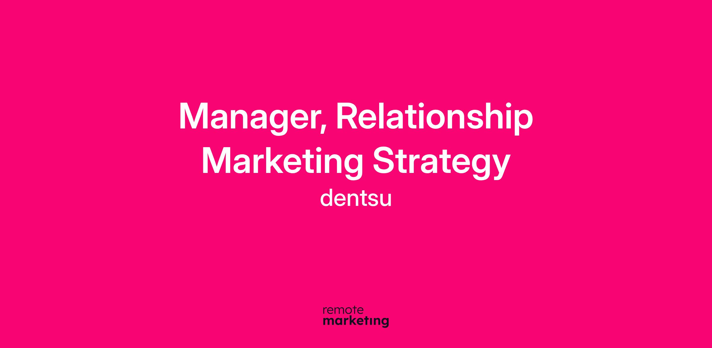 As Manager, Relationship Marketing Strategy you will join a team of talented and experienced marketers who focus on helping Merkle clients achieve their business goals. You will report into the Director, Relationship Marketing Strategy.