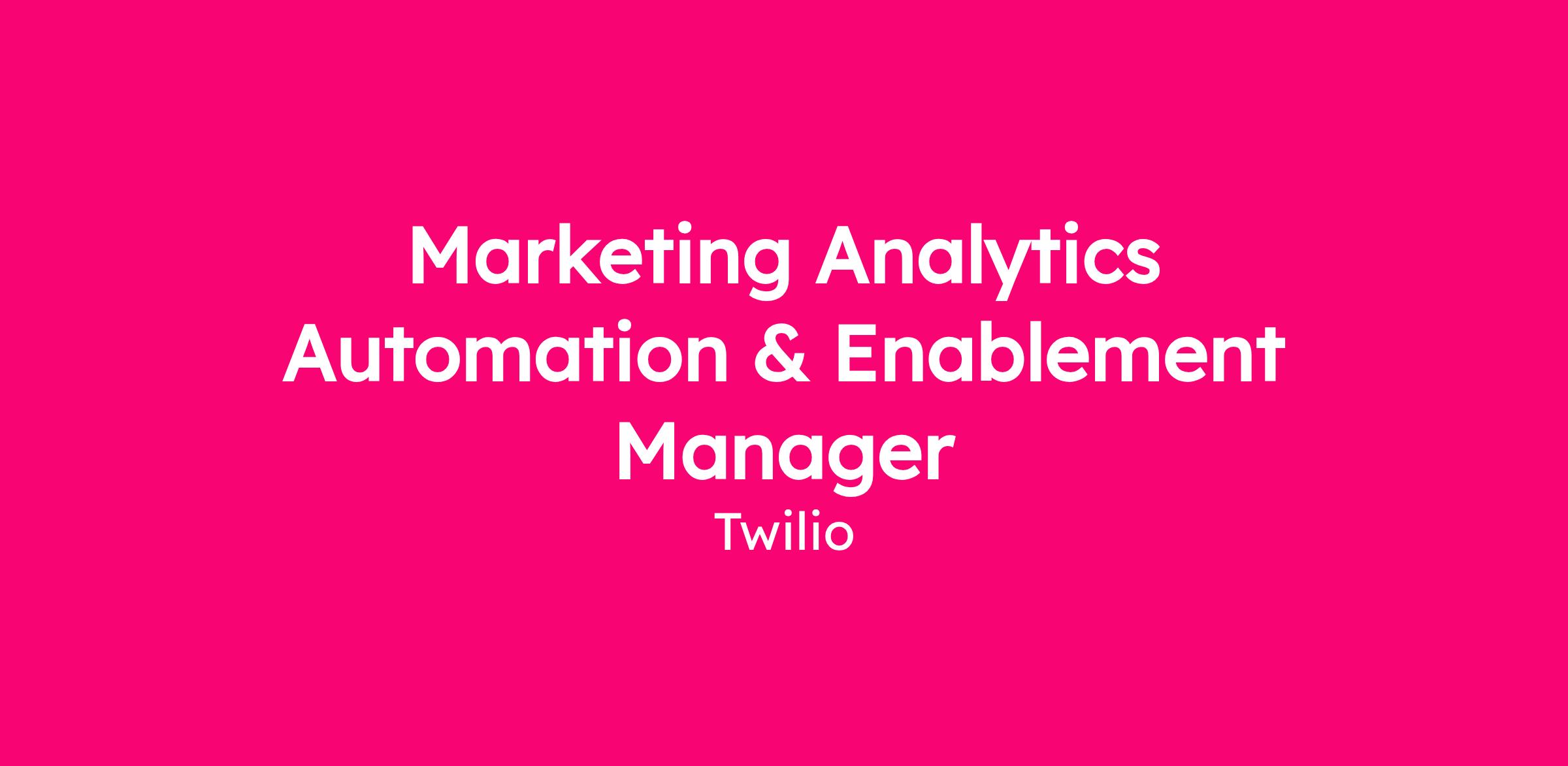 Join the team as Twilio’s next Marketing Analytics Automation & Enablement Manager.