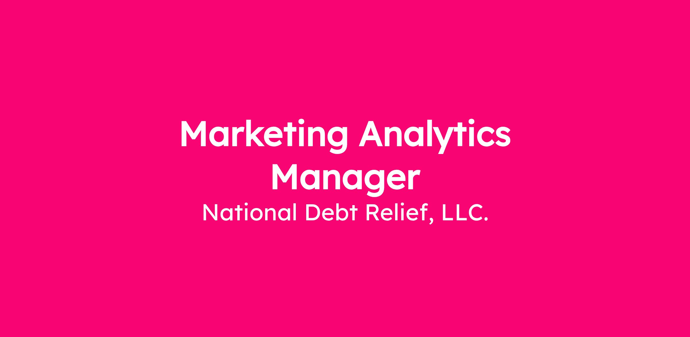National Debt Relief is seeking a strategic and data-driven Manager of Marketing Analytics to help lead analytics and measurement. Reporting to the Senior Director of Marketing Analytics, this role will manage digital marketing measurements (Programmatic, SEO, Meta, etc…,) drive analytically proven efficiencies in spend and deliver actionable insights. This role will play a key role in optimizing channel efficiency and driving growth and ROI through data analysis in collaboration with the internal marketing teams and external partners. This role will work cross-functionally with marketing, finance, data engineering and other analytics teams to help build out analytical sophistication and shape the future of marketing strategy at the company. This is a hands-on management role for someone who thrives at the intersection of analysis, strategy, and execution to drive measurable business outcomes.