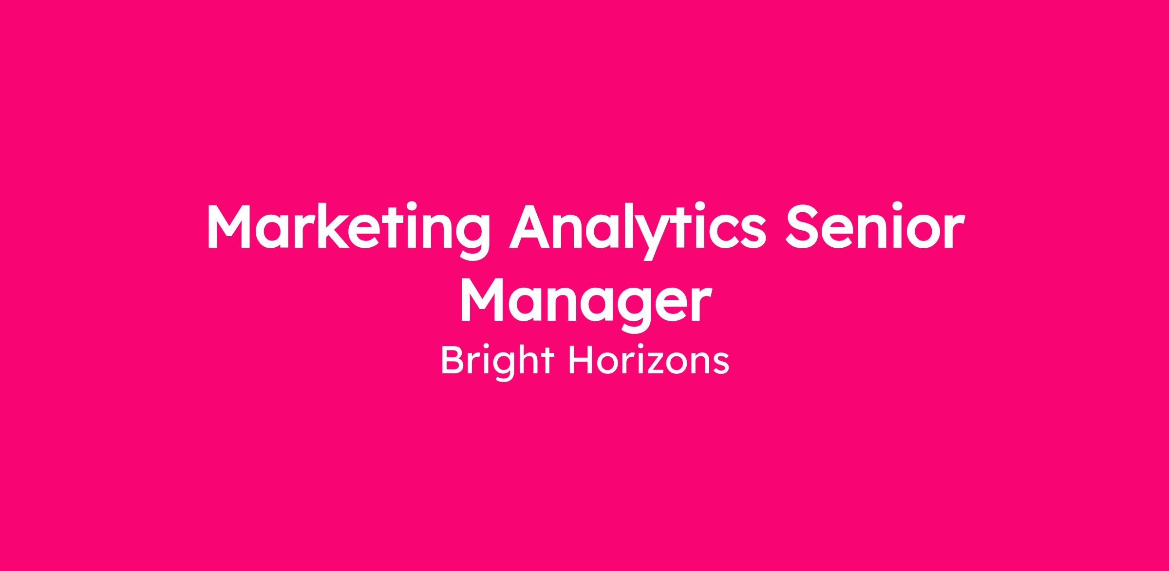 This role will elevate digital marketing analytics practice, evaluate marketing channel performance, and drive customer growth at Bright Horizons. This position will partner across the organization to understand stakeholder learning objectives, data availability, and how to answer tough questions and will communicate with leaders in Marketing, Product, IT, and agencies. This role focuses on ensuring robust analytical capabilities and streamlined processes, enabling self-service analytics, and effectively managing intake and prioritization of analytics requests from various internal stakeholders. This role leads a small team and works with remote teams across the US, UK, and India, during EST business hours.