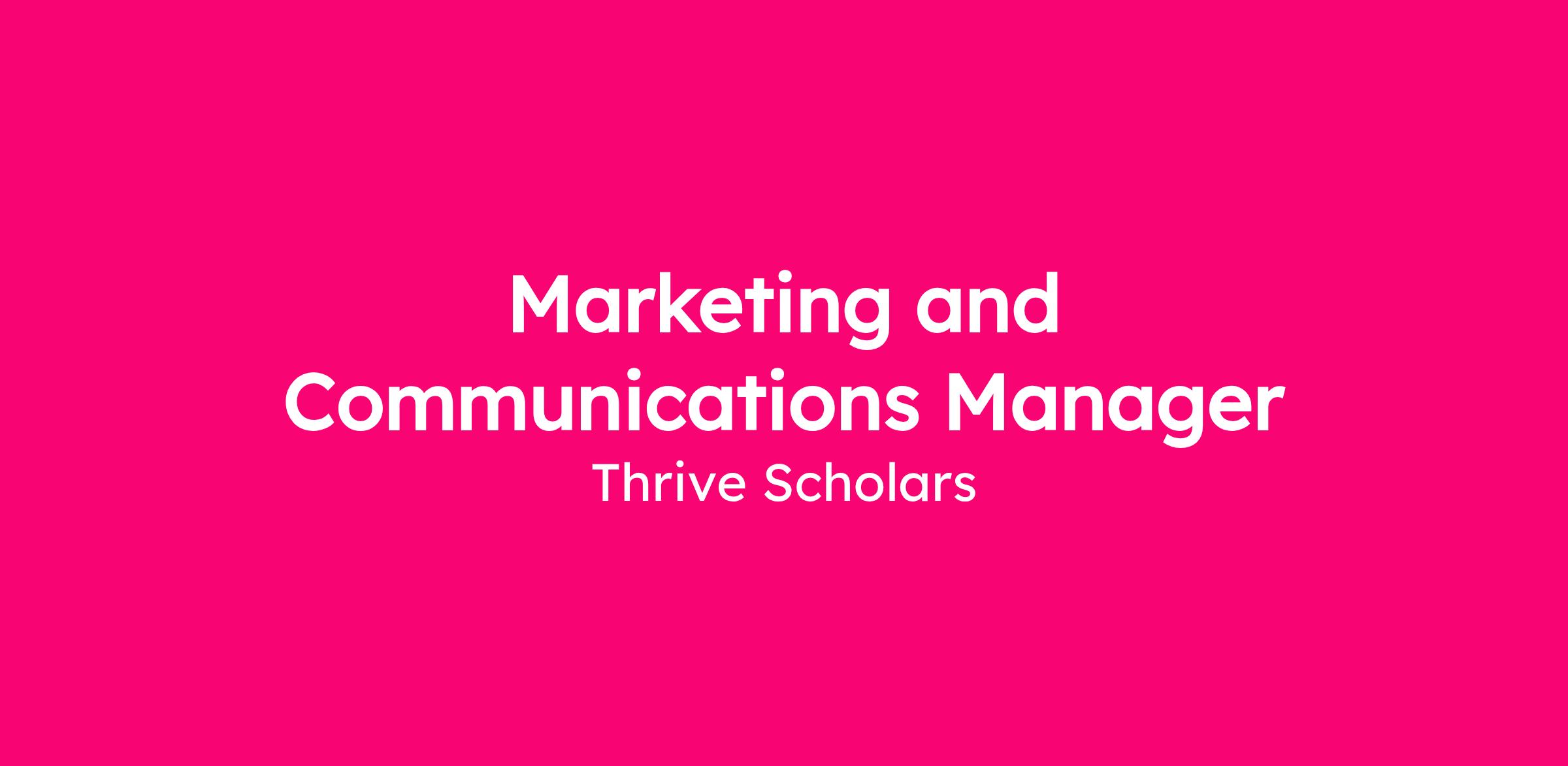Thrive Scholars is seeking a detail-oriented and collaborative Marketing & Communications Manager to support the execution of content and communications efforts that elevate the organization’s visibility and storytelling. This individual will play a key role in helping with content creation, campaign coordination and strategy, digital asset management, cross-functional support, and KPI reporting and analysis.