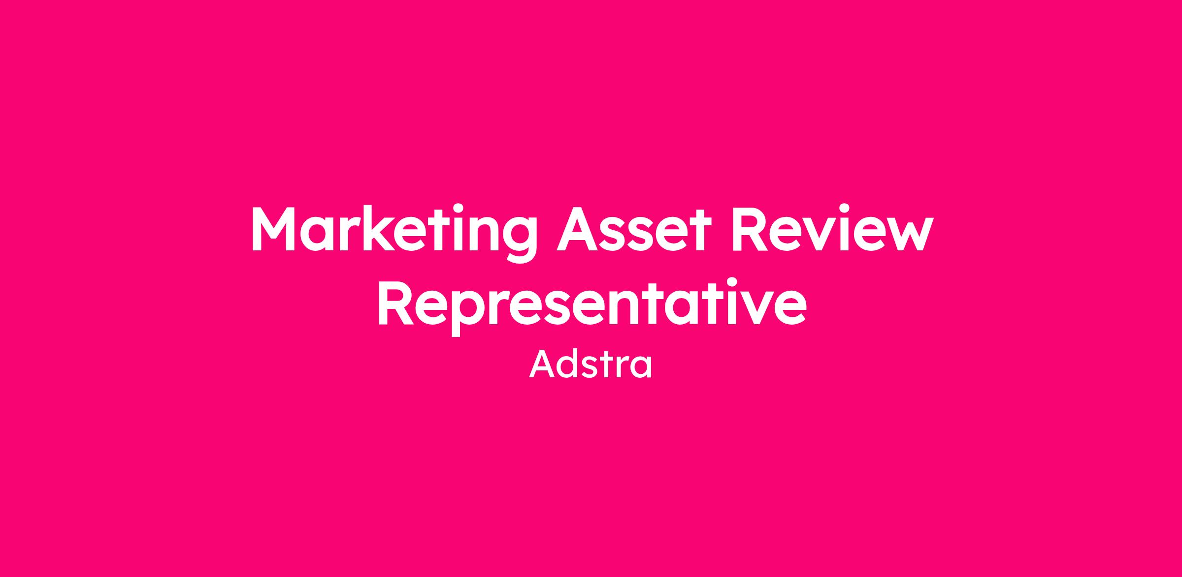The Marketing Asset Review Representative position will provide support to the American Express Marketing Compliance Review team. Responsibilities will include reviewing and approving marketing collateral; ensuring compliance with legal, regulatory, and branding guidelines; maintaining checklists and documentation within American Express’ systems; and supporting other projects as requested by the Adstra Manager and the client leader.