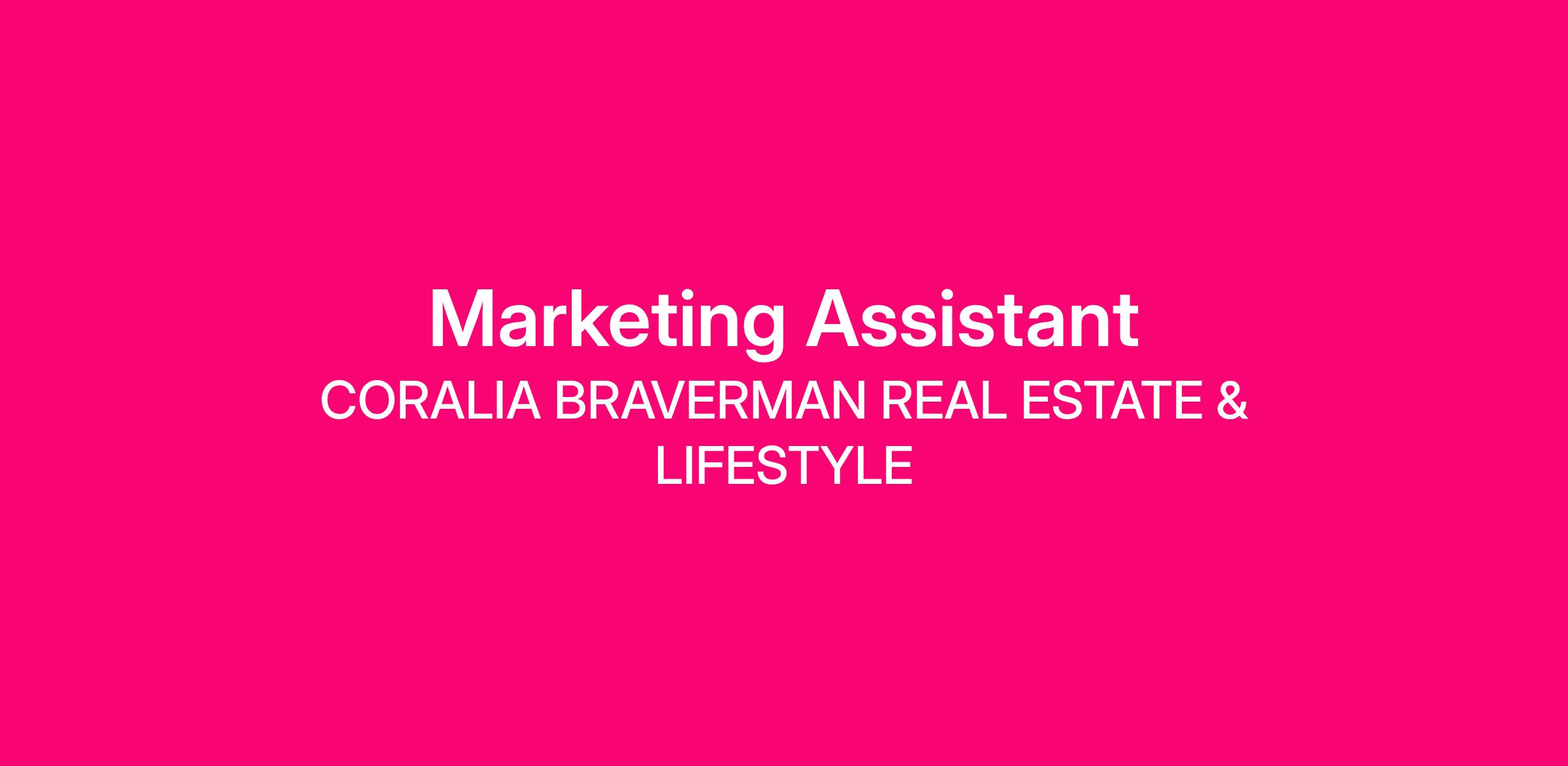 CORALIA BRAVERMAN REAL ESTATE & LIFESTYLE is seeking a dynamic Marketing Assistant to join our team in Miami, Florida. As an esteemed real estate agency affiliated with Florida Capital Realty, we specialize in assisting clients with buying, selling, renting, and investing in both residential and commercial properties throughout the vibrant South Florida market. Our commitment to providing personalized client service, combined with our local market expertise and strategic insights, allows us to navigate property transactions and support our clients' growth effectively. The Marketing Assistant will play a pivotal role in promoting our brand, enhancing our online presence, and developing marketing strategies that resonate with potential clients. This is an exciting opportunity for a motivated individual who is passionate about real estate and eager to contribute to our success by fostering marketing initiatives that reflect our dedication to excellence and client satisfaction.