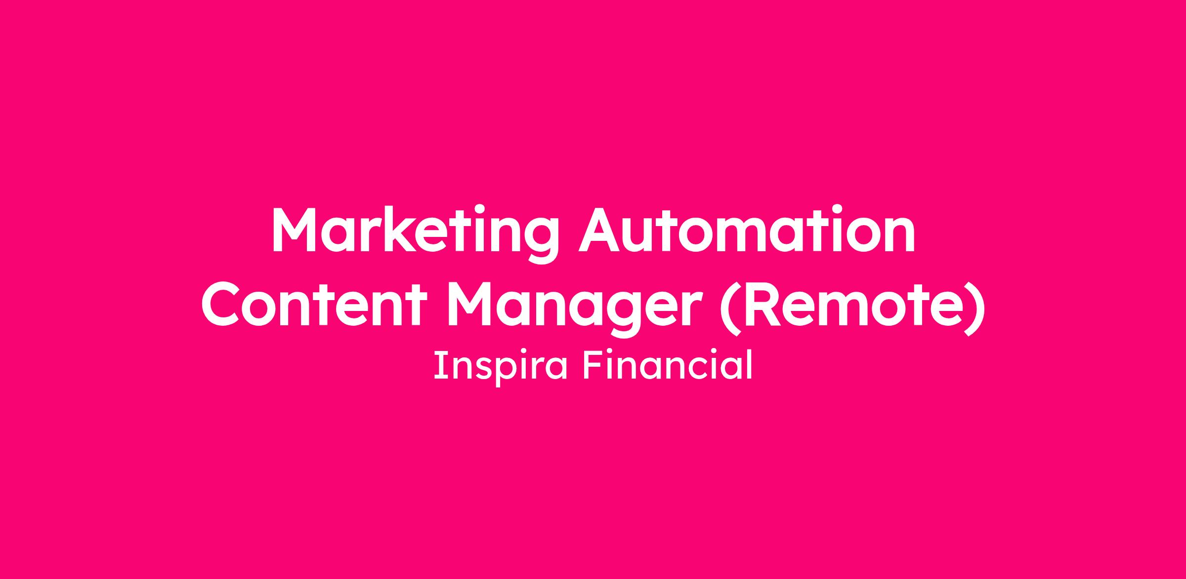 The Marketing Automation Manager will own the content strategy and optimization of Inspira Financials’ marketing automation and sales engagement programs. This role is critical in driving scalable demand nurturing and customer lifecycle campaigns with a primary emphasis on email outreach and sales engagement via our current systems Marketing Cloud and Outreach.io or other similar systems as refine and evolve our marketing technology stack.