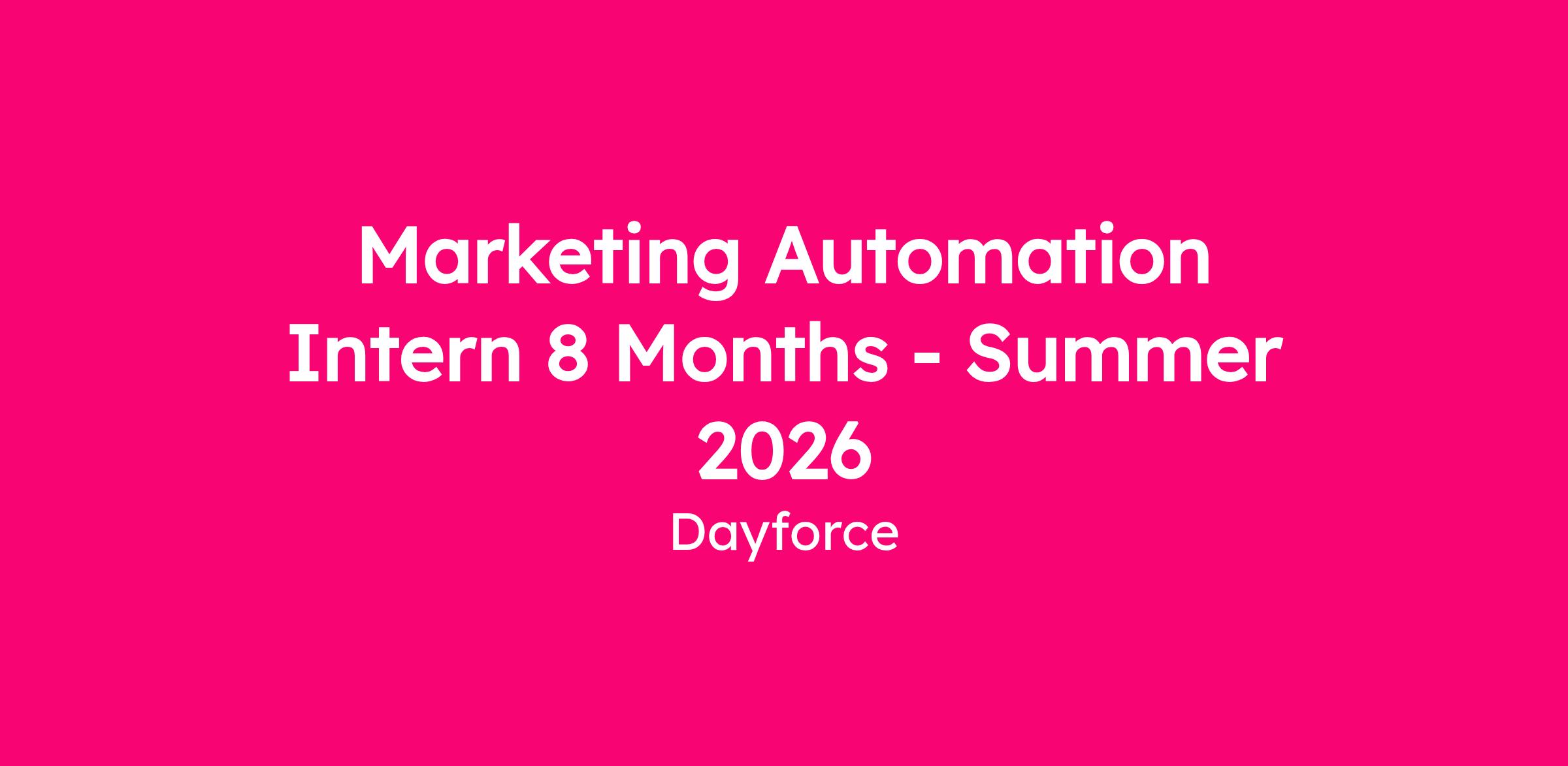 We are looking for a Marketing Automation Intern to join the Marketing Automation team within the Dayforce Marketing department. This role will be to work closely with the Marketing Automation Partner, Project and Traffic Management, and Growth Marketing teams for campaign execution.