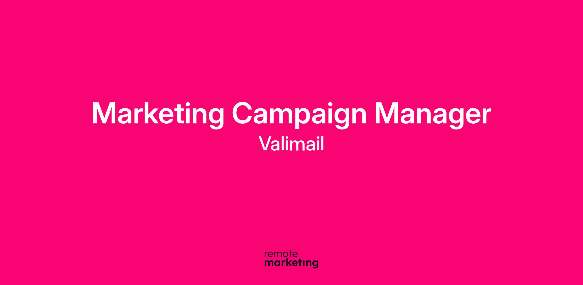 Valimail is seeking a Marketing Campaign Manager to join our Demand Generation team. Reporting to the Director of Demand Generation, this role is responsible for planning, executing, and optimizing integrated campaigns that generate pipeline and drive business growth. You’ll collaborate across teams to develop audience segmentation, build nurture programs, and test performance to continuously improve campaign results.