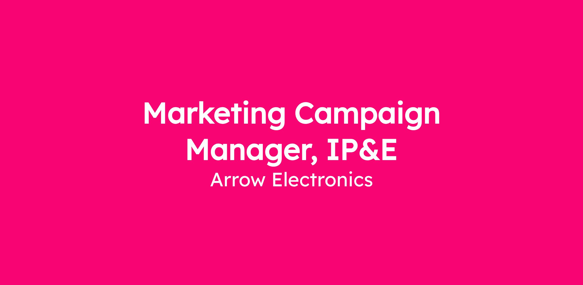 The Marketing Campaign Manager, IP&E is responsible for planning, executing, and optimizing marketing campaigns that support Arrow’s Global Components business with a focus on IP&E (Interconnects, Passives, and Electromechanical components). This role sits within Arrow’s Corporate Marketing organization and works in close partnership with cross-functional teams to drive aligned, effective go-to-market execution.
