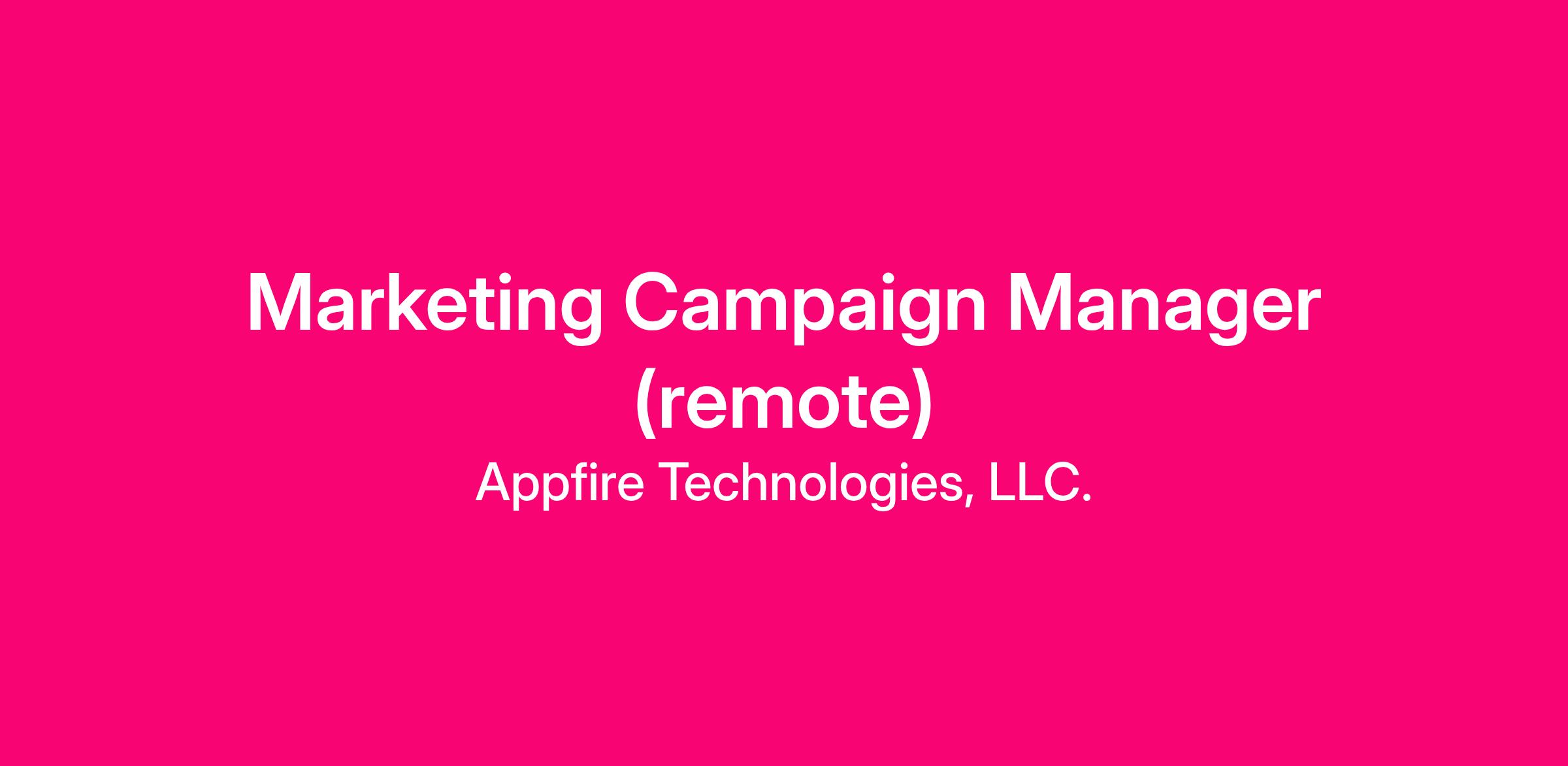 Appfire is seeking a Marketing Campaign Manager to plan and execute high-impact marketing campaigns that drive awareness, engagement, and pipeline growth. In this role, you’ll collaborate across Marketing, Product, and Sales to bring integrated campaigns to life - from strategy to optimization - ensuring every initiative aligns with key business objectives.