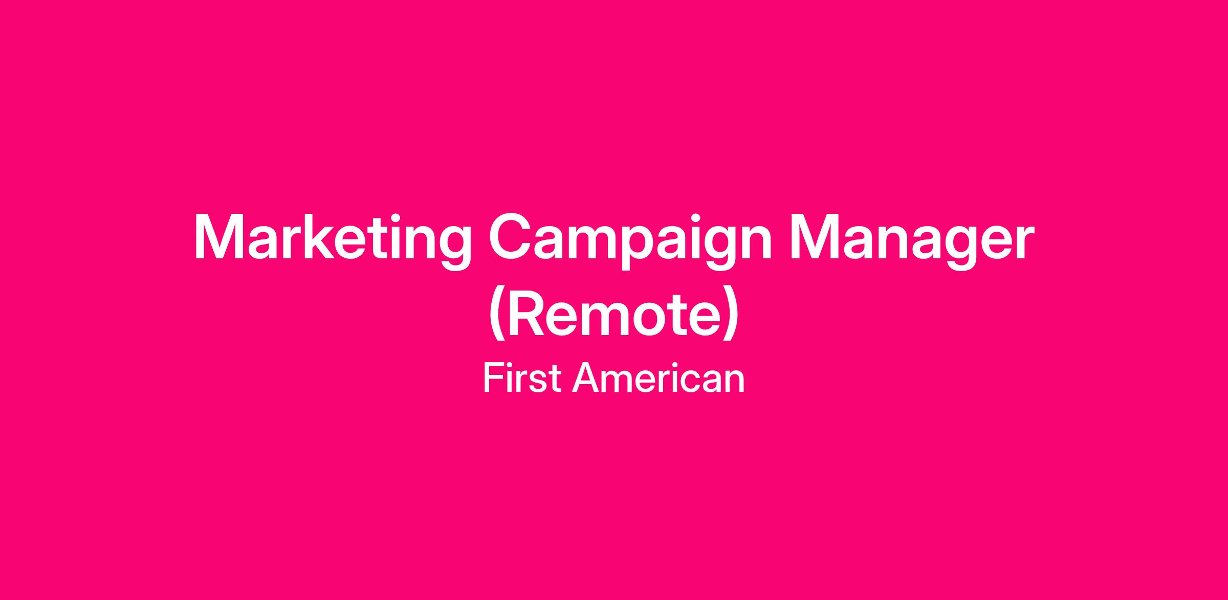 First American Title is seeking an experienced Marketing Campaign Manager to lead and execute strategic initiatives that generate demand, drive leads, and grow revenue. This role owns the development, execution and optimization of integrated programs – new and existing – across digital, email, social, paid media and events. They will work closely with product marketing, sales, operations and creative teams to develop and implement campaigns and supporting sales materials, and track and optimize performance to achieve measurable results. The ideal candidate is a data-driven marketer, experienced in goal setting and KPI management, with a passion for innovation and collaboration, and the ability to craft and deliver effective campaigns targeting key customer segments.