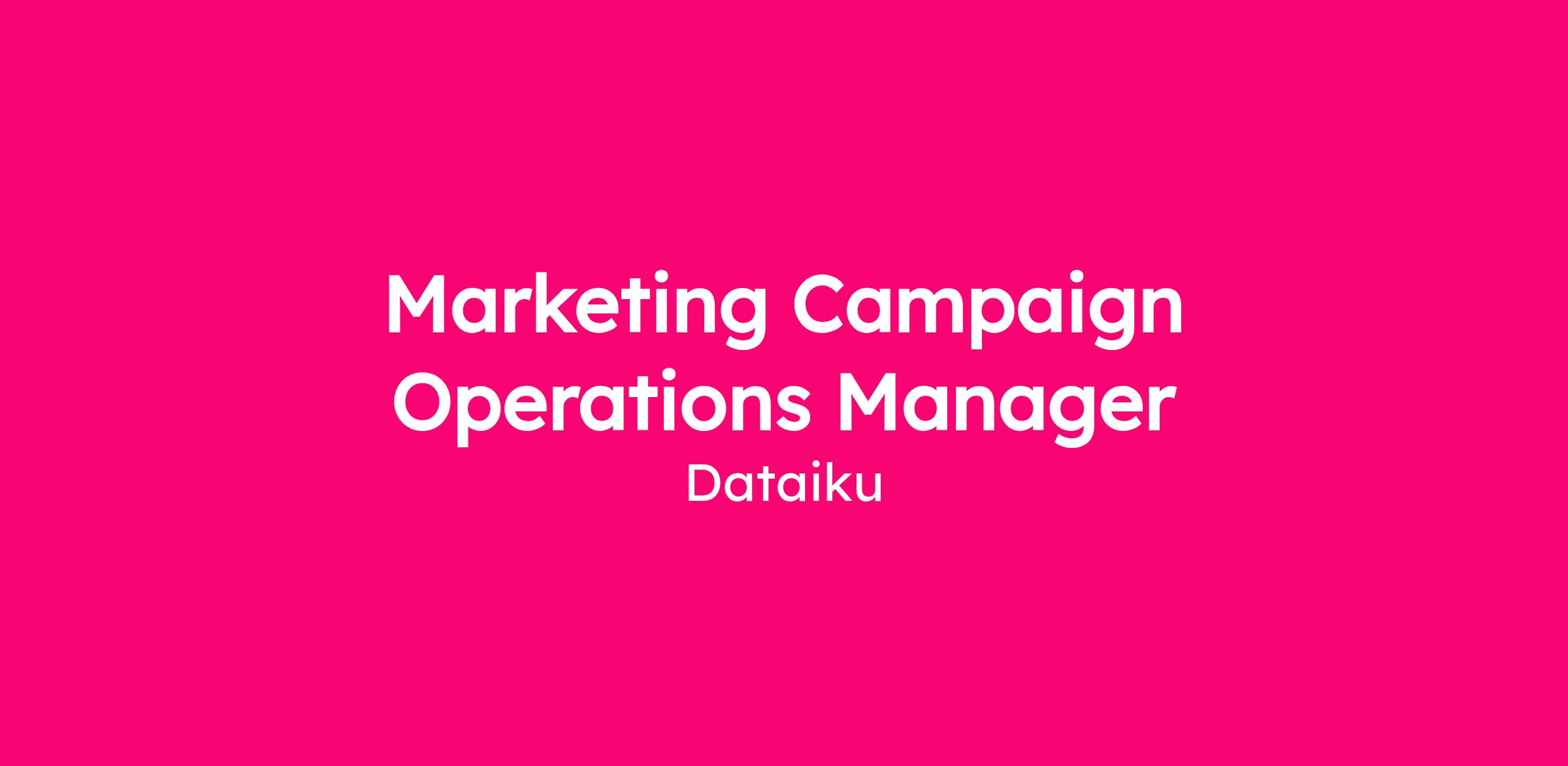 Dataiku is looking for a Marketing Campaign Operations Manager to help bolster the efficiency of our global marketing team. You will be responsible for working closely with our marketers throughout campaign creation, and protecting the sanctity of our data. This is a vital role, and a unique opportunity to contribute to the incredible growth at Dataiku by enabling our marketers on what good looks like, keeping us on innovation’s bleeding edge.