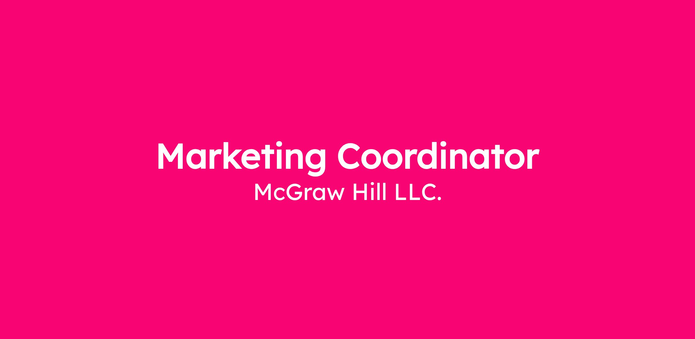 McGraw Hill, the leading provider of digital and print educational resources, is looking for a Marketing Coordinator to provide internal support for a team of marketing managers in McGraw Hill’s higher ed division and to perform a broad range of tasks, including the coordination of special projects, and acting as liaison with other higher education functional teams.