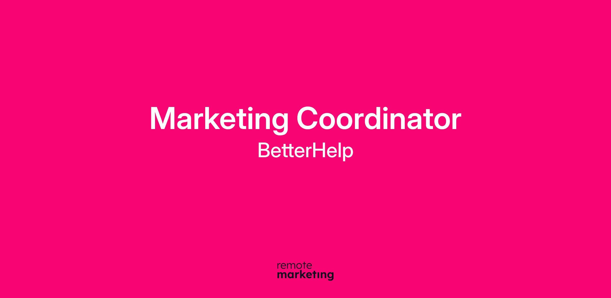 As the Marketing Coordinator at BetterHelp, you’ll join a diverse team of licensed clinicians, engineers, product pros, creatives, marketers, and business leaders who share a passion for expanding access to therapy. And as a mental health company, we take employee mental health just as seriously as we do our mission. We deeply invest in our team’s well-being and professional development, because we know that business and individual growth go hand-in-hand. At BetterHelp, you’ll carve your own path, make an immediate impact, and be challenged every day – with a supportive community behind you the whole way.