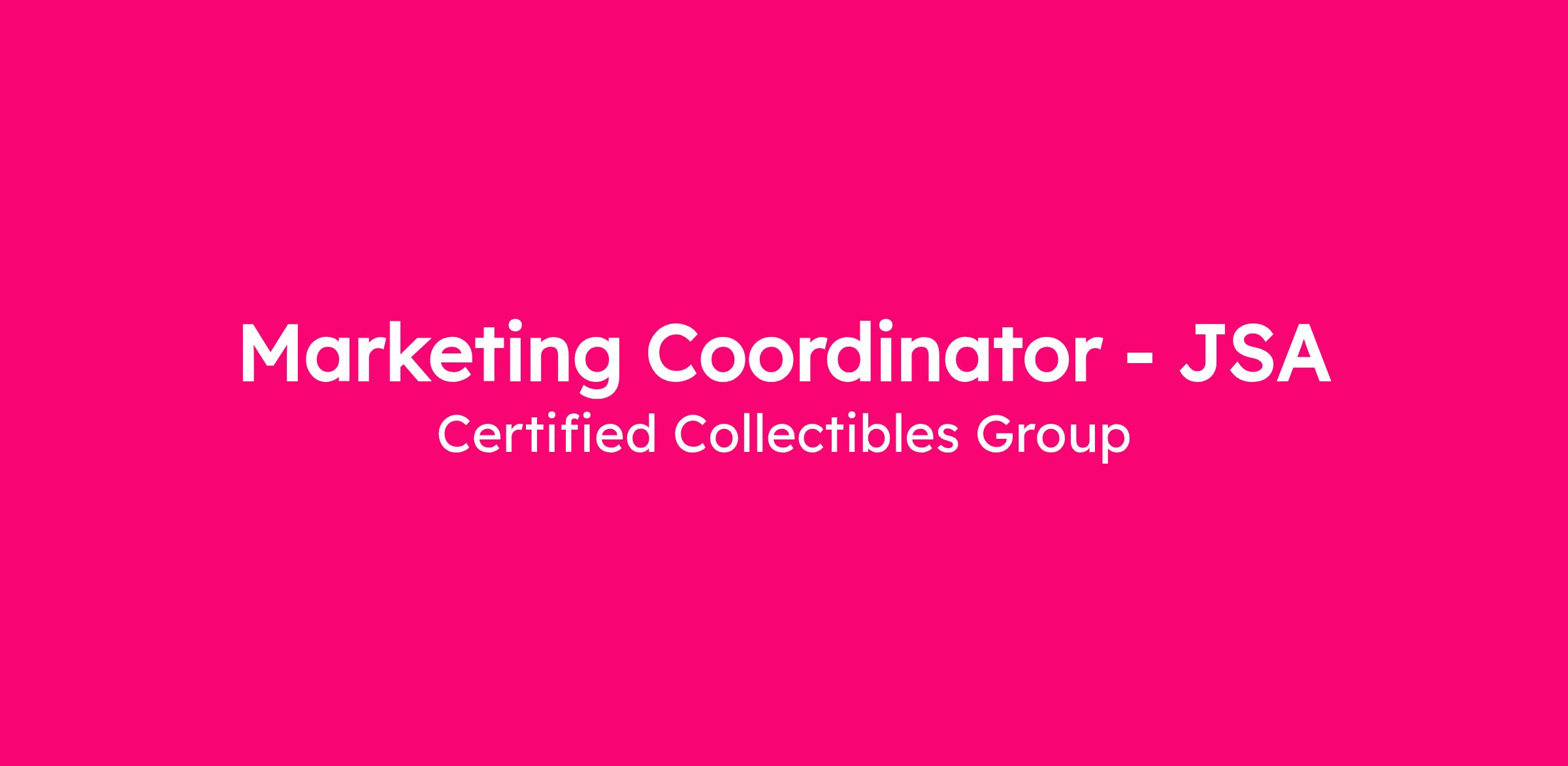 The Certified Collectibles Group is seeking a Marketing Coordinator to join our fast-paced, highly collaborative marketing team! Certified Collectibles Group is the world’s leading provider of expert and impartial services for collectibles, including coins, banknotes, comic books, magazines, TCGs, sports cards, video games, home video, autographs, and more. This role owns marketing execution for the leading brand on autograph authentication, JSA.