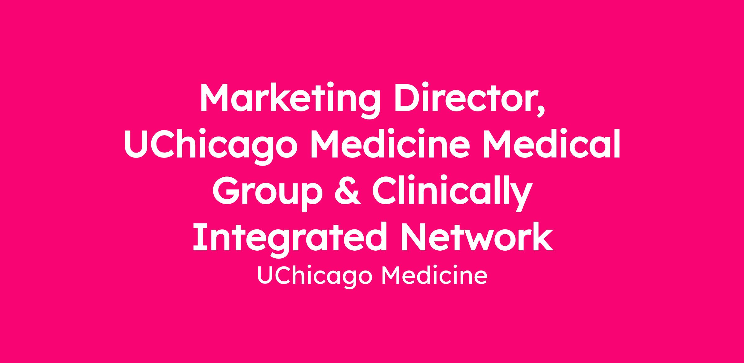 Join a world-class academic healthcare system, UChicago Medicine, as the Marketing Director, UChicago Medicine Medical Group & Clinically Integrated Network responsible for managing strategic marketing, brand management, patient acquisition & growth campaigns, community relations & outreach, and content development & communication initiatives for the UChicago Medicine (UCM) Medical Group and Clinically Integrated network (CIN).