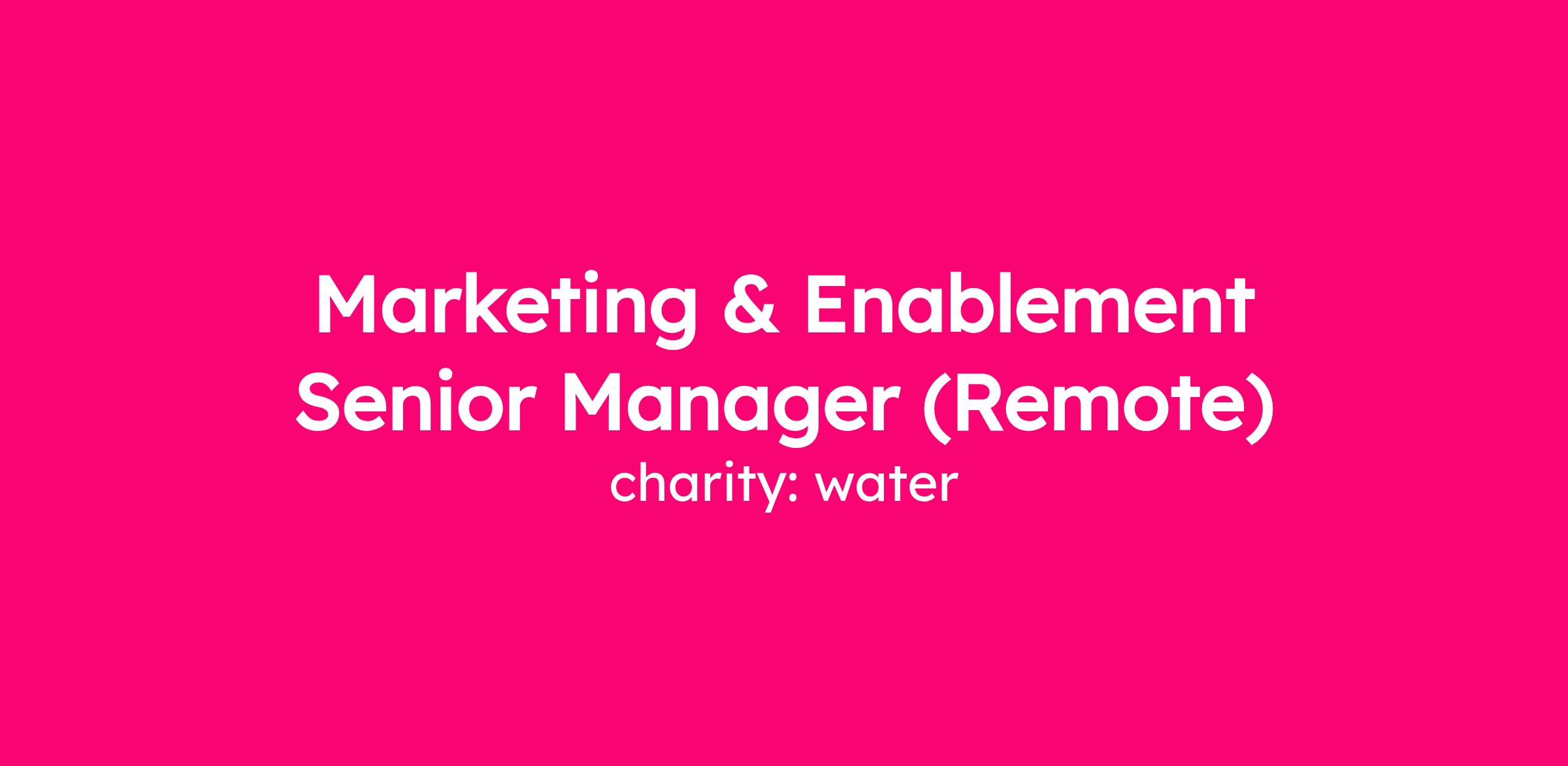 The Marketing & Enablement Senior Manager, is an individual contributor, who reports to the VP of Marketing & Partnerships and is responsible for designing and implementing donor journeys, major donor fundraising products, and setting our major donor communication strategy. You’ll be embedded in the Key Relationships team to understand their unique goals and needs and then work closely with the wider Marketing team to shape strategies that create world-class experiences and campaigns that expand our Major Donor supporter base and increase Lifetime Value. You’ll collaborate with Creative and Product to develop world-class stories, reports, digital experiences, and communications that further the charity: water brand.