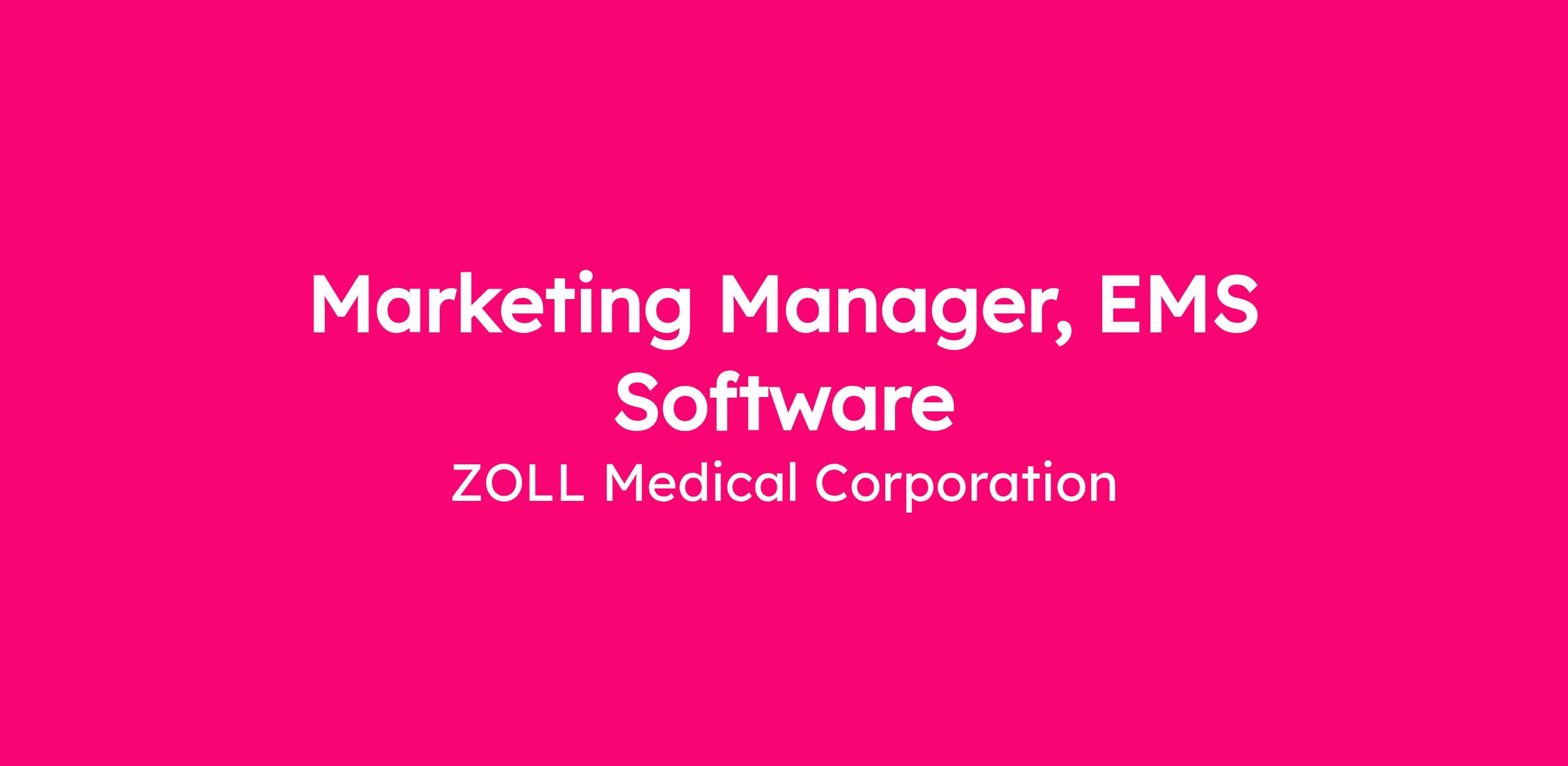 The Marketing Manager, EMS Software is responsible for executing marketing initiatives that drive adoption, retention, and growth of ZOLL’s EMS software solutions across North America.