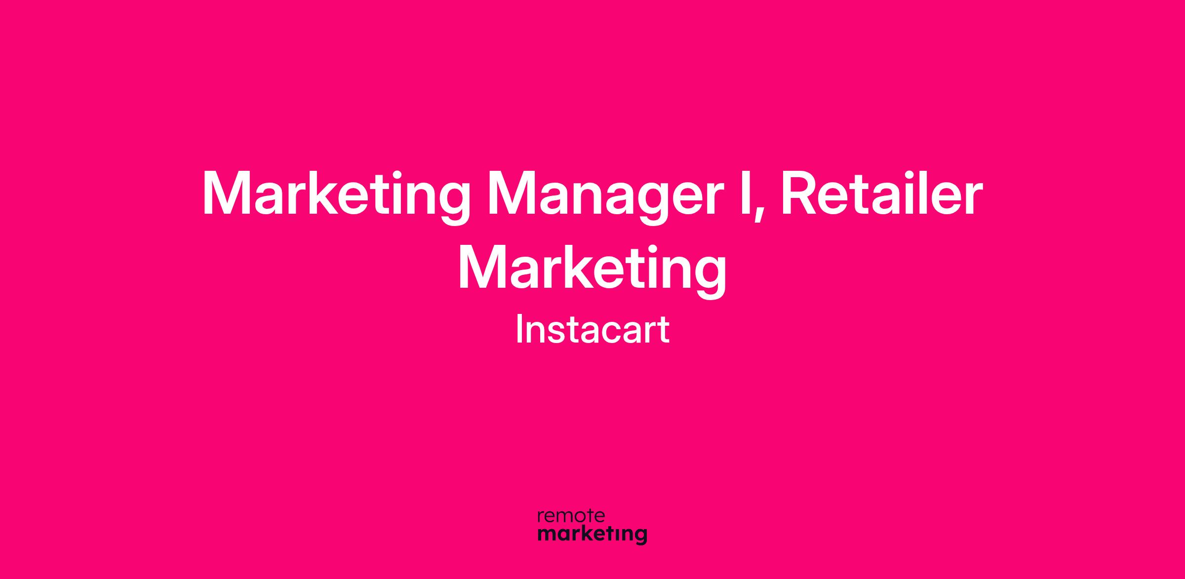 About the Team - The Instacart Marketing Team is highly analytical, moves fast and is passionate about delivering results. Our next Marketing Manager I, Retailer Marketing will be a vital addition to our Retailer Marketing team as we continue to partner with Business Development, Brand, Product, and Product Marketing. Together, we will work to find opportunities to help people understand what Instacart brings to the table and make our retailers successful on Instacart.