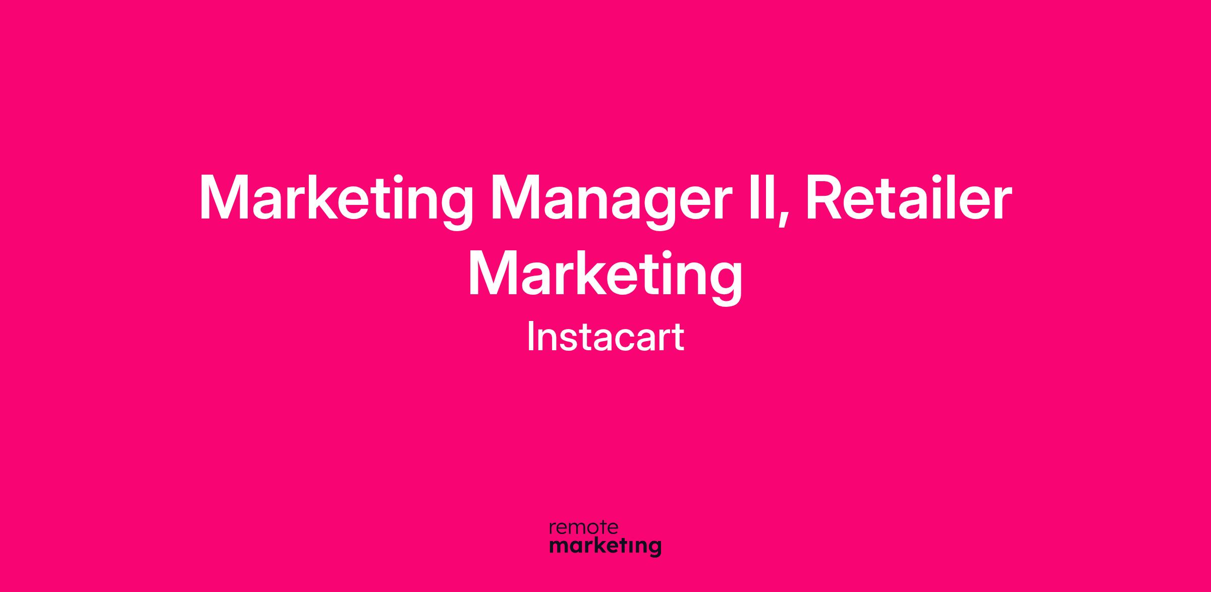 About the Team - The Instacart Marketing Team is highly analytical, moves fast and is passionate about delivering results. Our next Marketing Manager II, Retailer Marketing will be a vital addition to our Retailer Marketing team as we continue to partner with Business Development, Brand, Product, Product Marketing, Data Science, Analytics, and Performance Marketing. Together, we will work to find opportunities to help people understand what Instacart brings to the table and make our retailers successful on Instacart.
