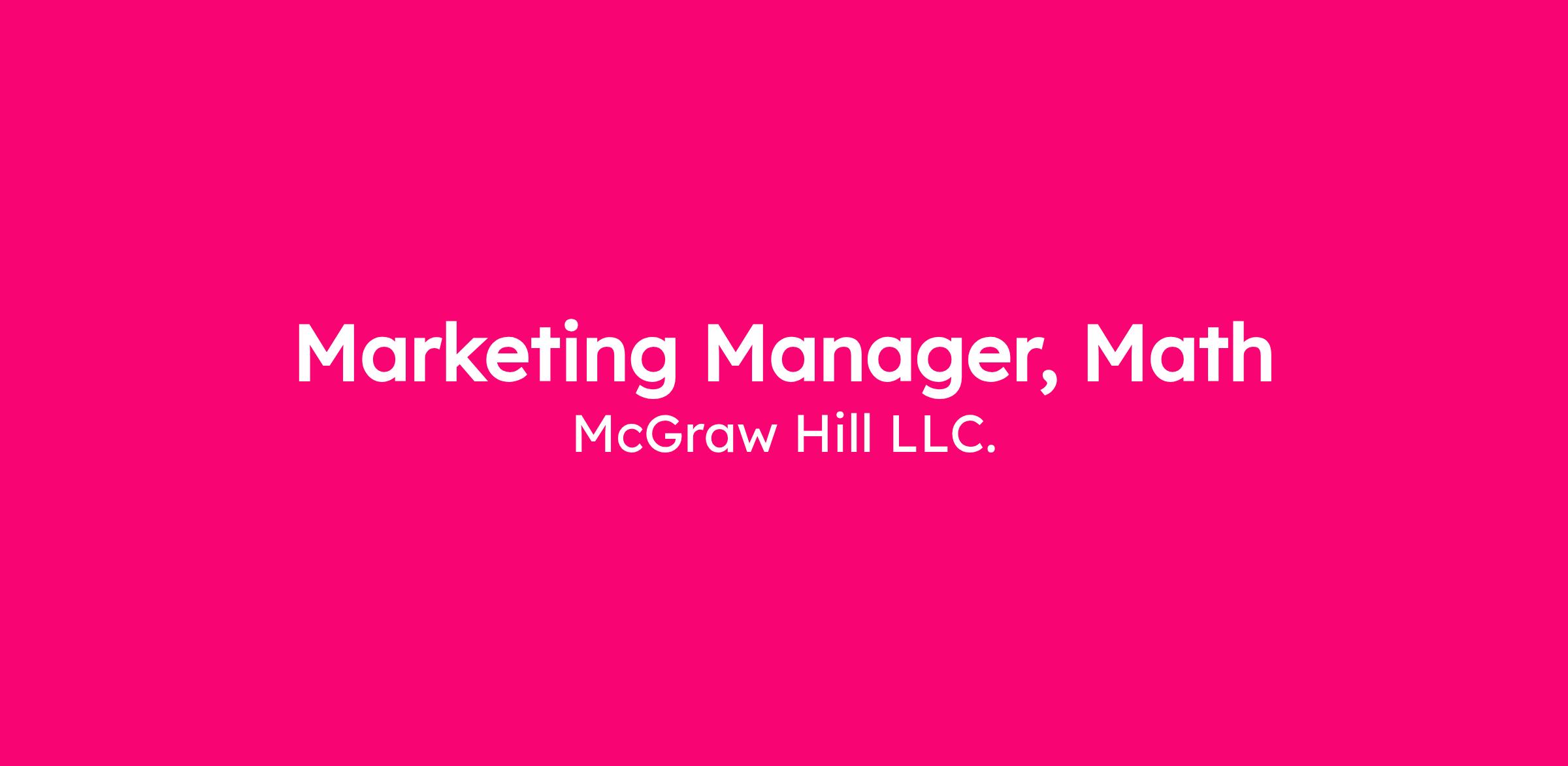 McGraw Hill, the leading provider of digital and print educational resources, is looking for a Marketing Manager, Math for our Higher Education division.