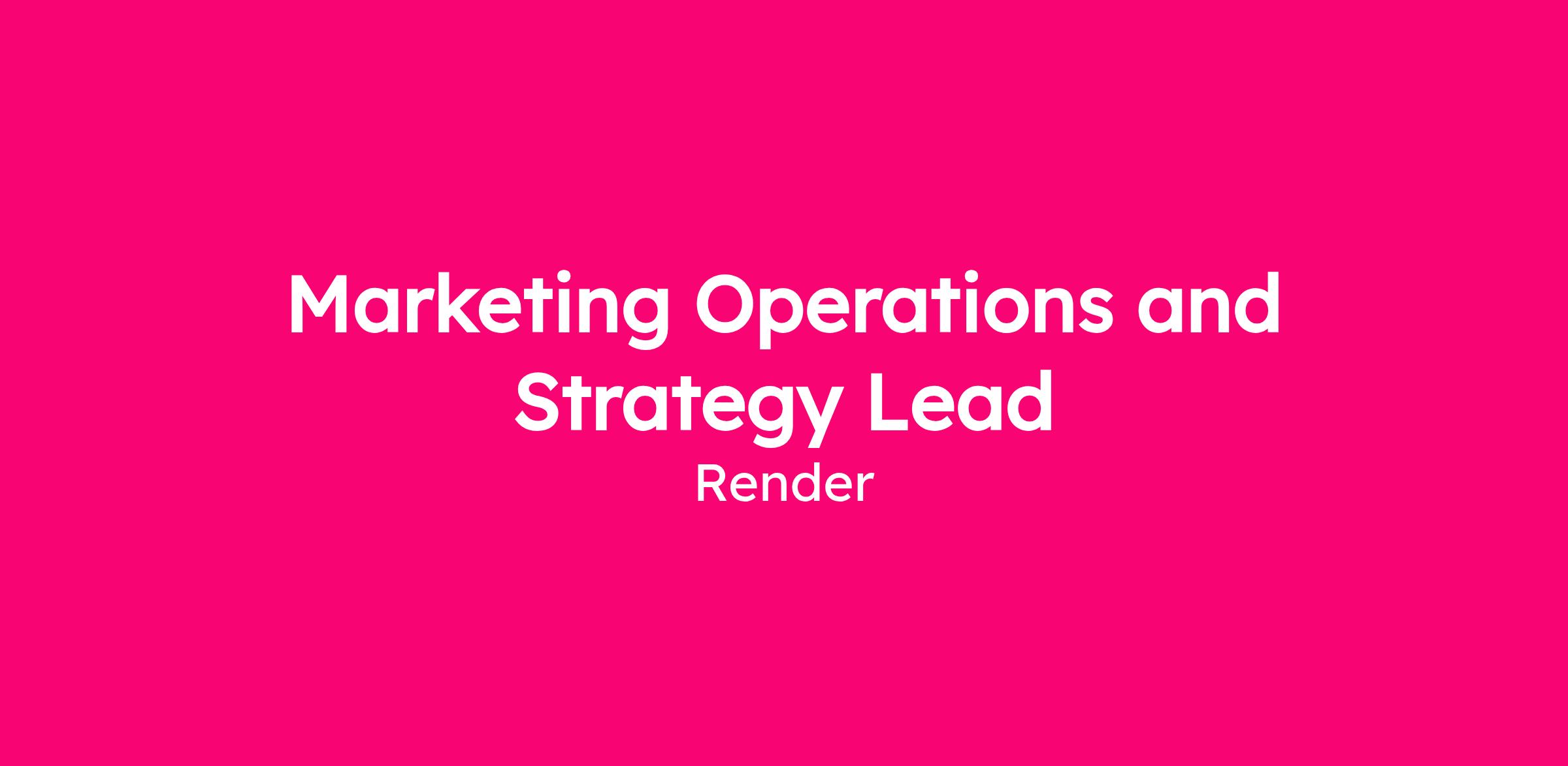 As the Marketing Operations and Strategy Lead, you will own the operational infrastructure that drives Render’s marketing team. You will be the "connective tissue" between Marketing, Sales, and Finance, ensuring our GTM motion is as performant as the platform we build.