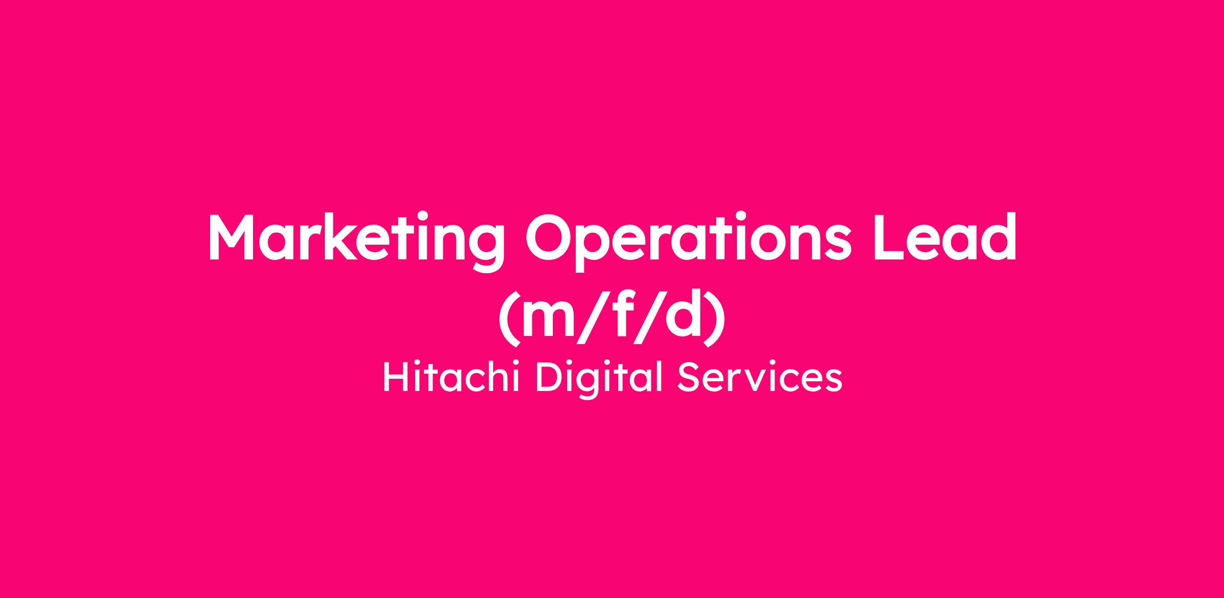 This is a rare and exciting opportunity for an experienced Marketing Operations Lead to join Hitachi's Global Marketing and Sales (GM&S) team, a high-profile corporate initiative at the very centre of Hitachi Group.