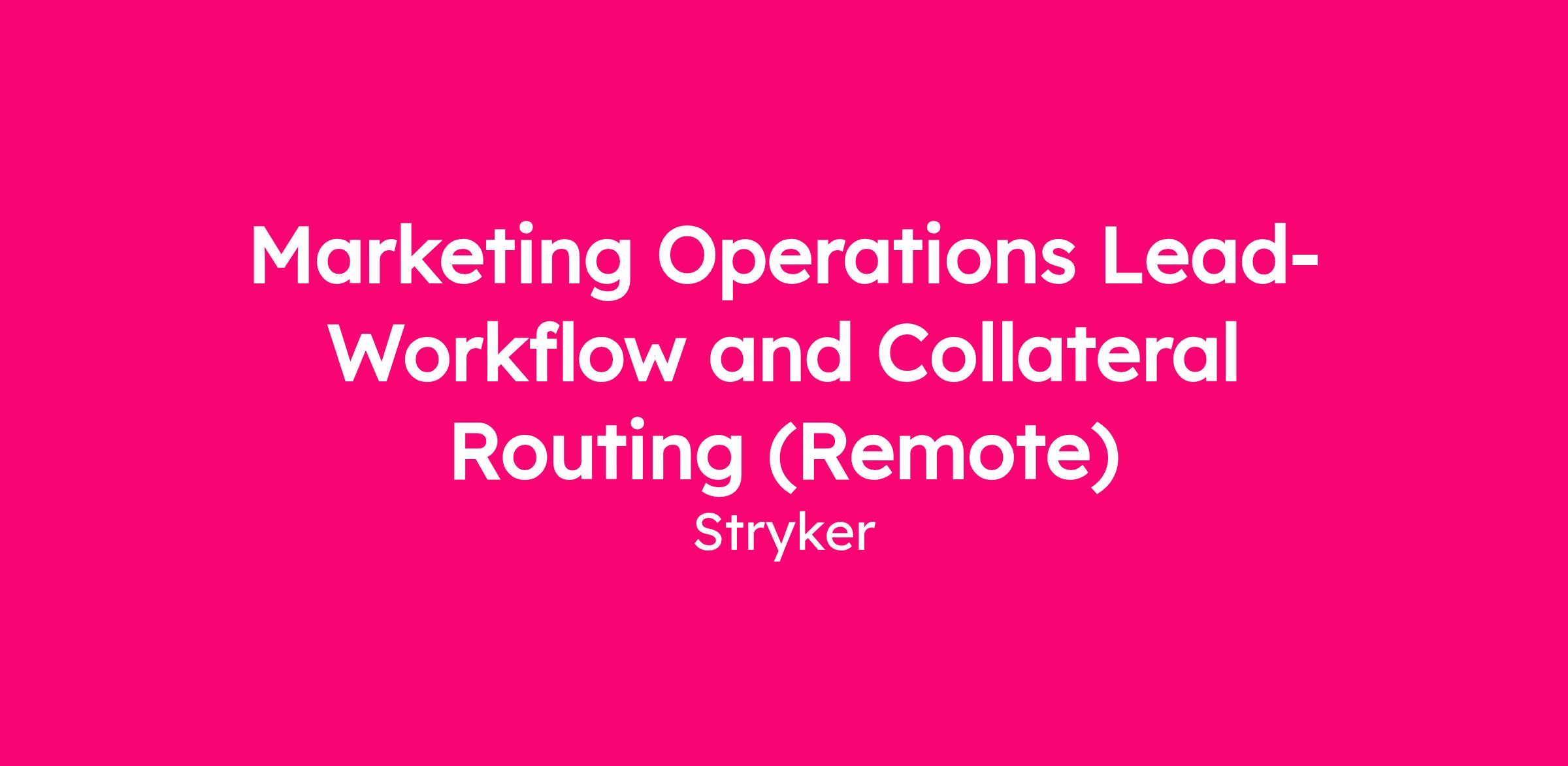 The Marketing Operations Lead will manage the intake, routing and approval workflow for marketing collateral through Workfront. This role is responsible for ensuring submissions follow established processes and are routed through the appropriate stakeholder and regulatory (RAQA) approval pathways.
